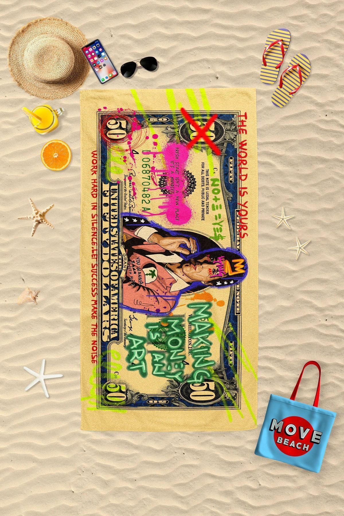MoveBeach منشفة الشاطئ منقوشة