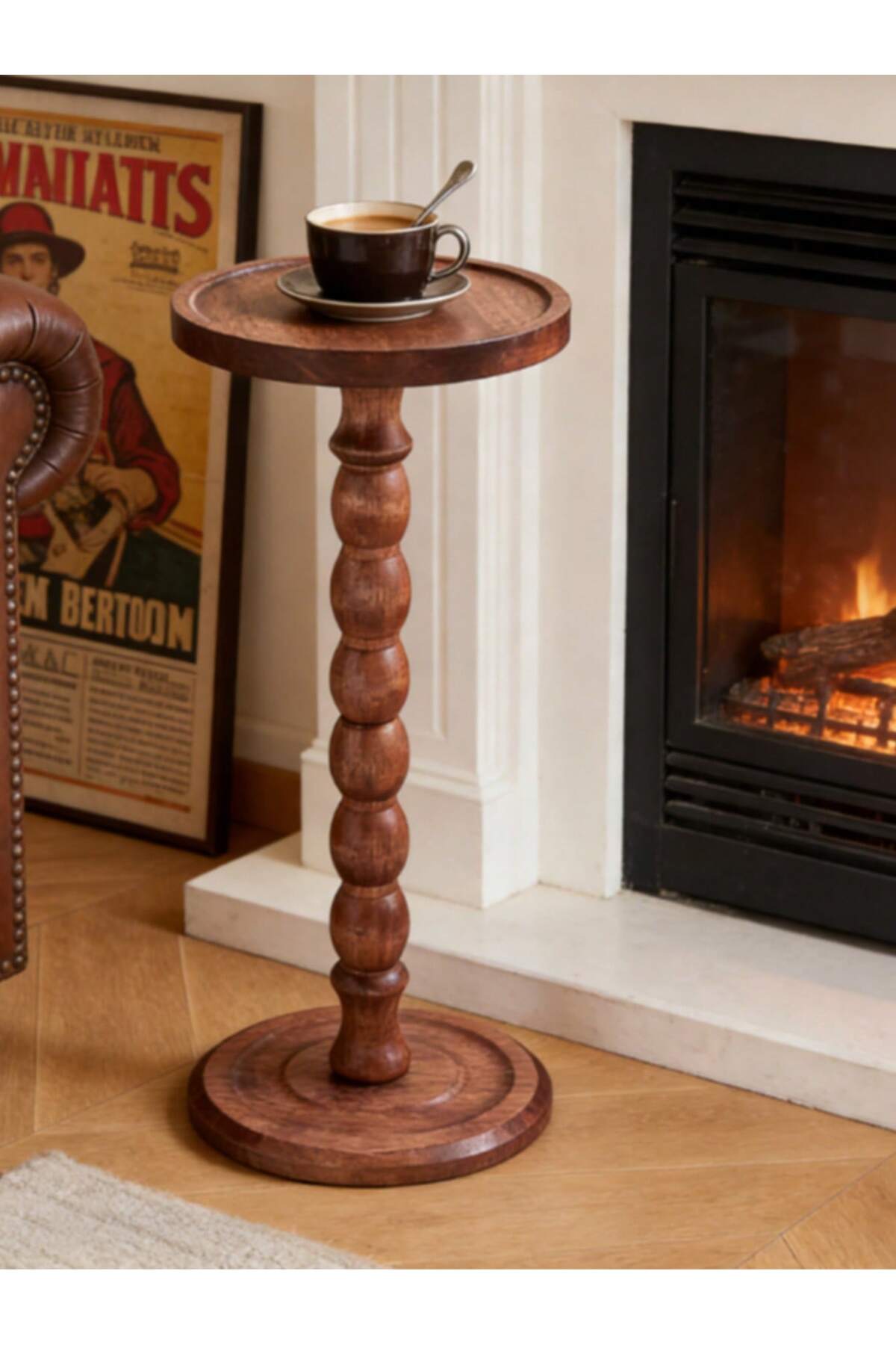 ميزات طاولة جانبية دائرية متحركة بأرجل من الخشب الصلب، طاولة متعددة الاستخدامات للفناء الخلفي أو ركن القهوة من Mtanvxay