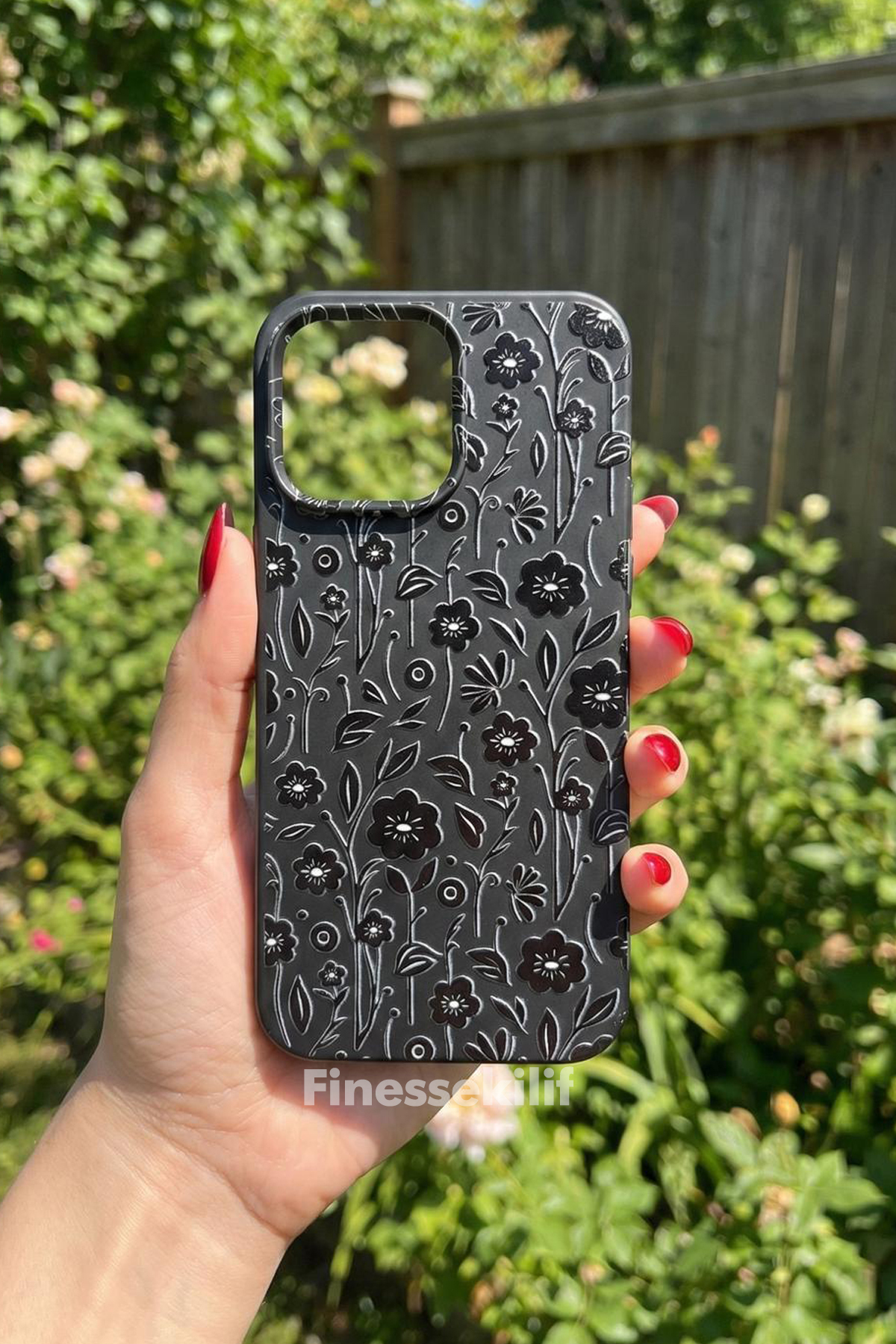 ميزات حافظة متوافقة مع هاتف iPhone 14 Pro Max بتصميم زهور مطبوع باللون الأسود من Multitronic