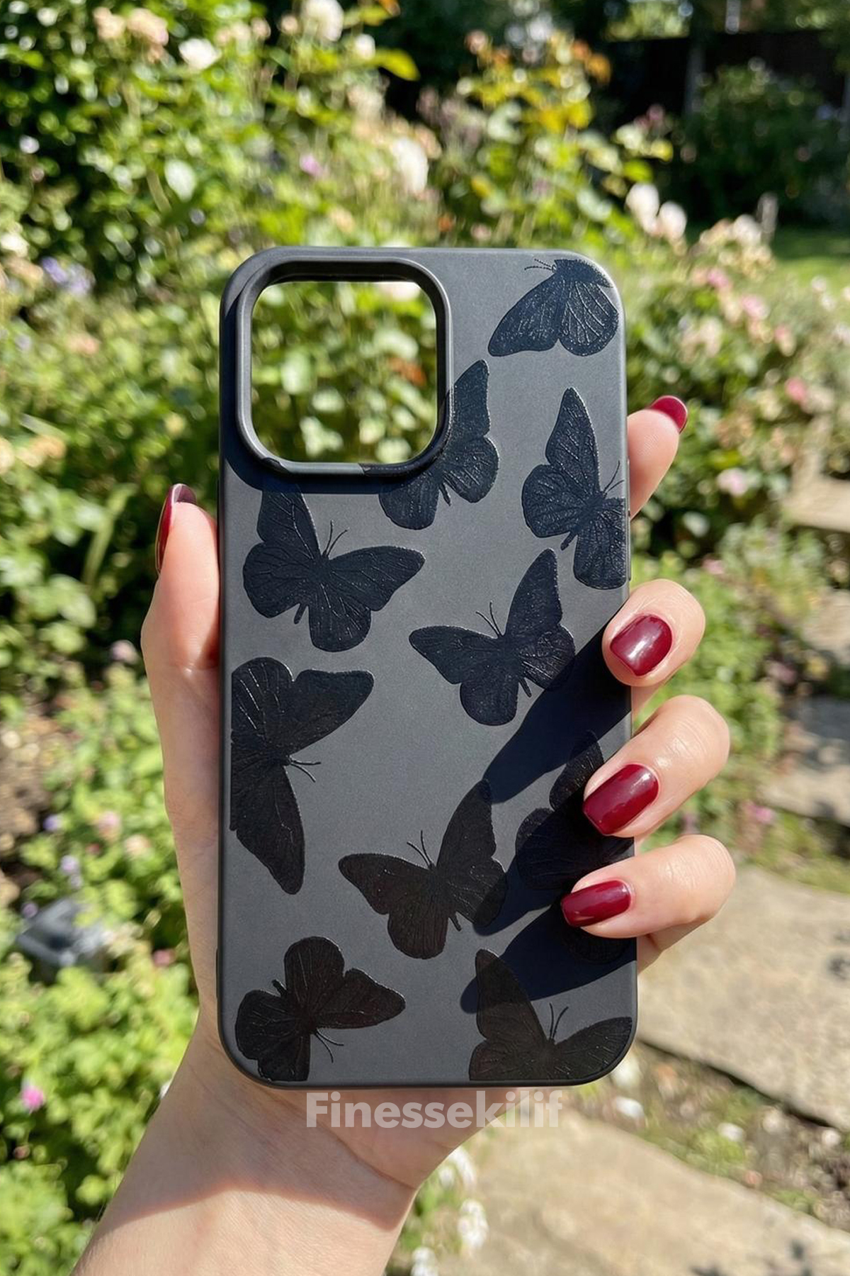 ميزات حافظة متوافقة مع هاتف iPhone 15 Pro بتصميم الفراشات مطبوع باللون الأسود من Multitronic