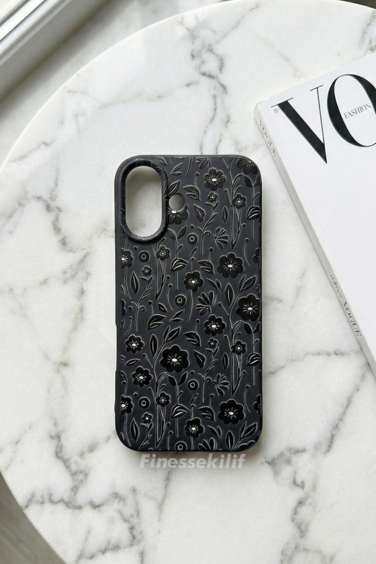 ميزات حافظة متوافقة مع هاتف iPhone 17 بتصميم زهور مطبوع باللون الأسود من Multitronic