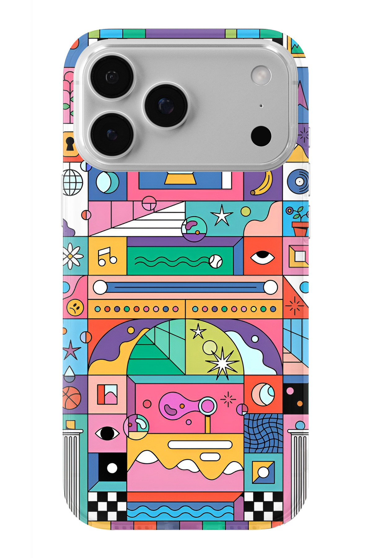 ميزات حافظة شفافة مطبوعة بتصميم مكعب كولاج متوافقة مع هاتف iPhone 17 Pro من Multitronic