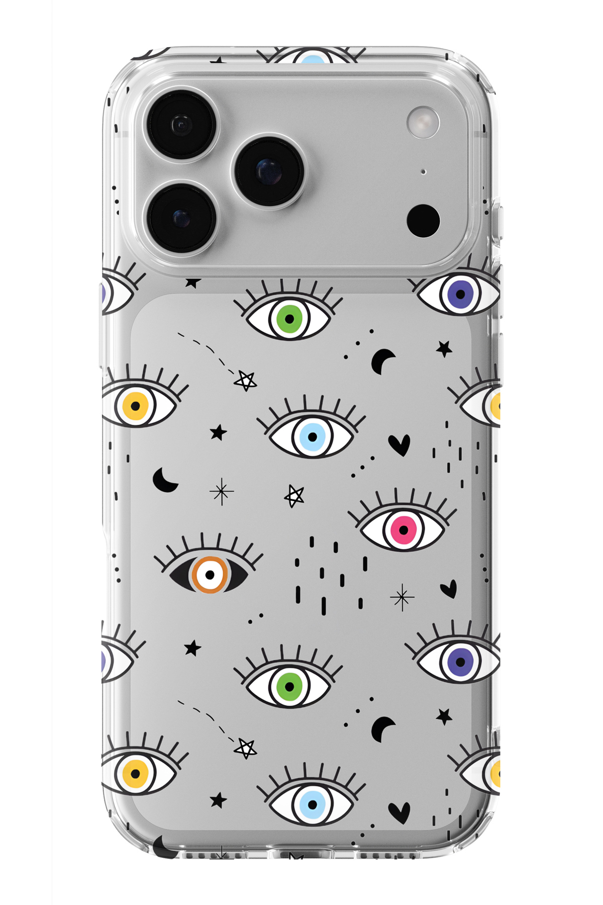 ميزات حافظة شفافة مطبوعة بتصميم عيون شريرة متوافقة مع iPhone 17 Pro من Multitronic