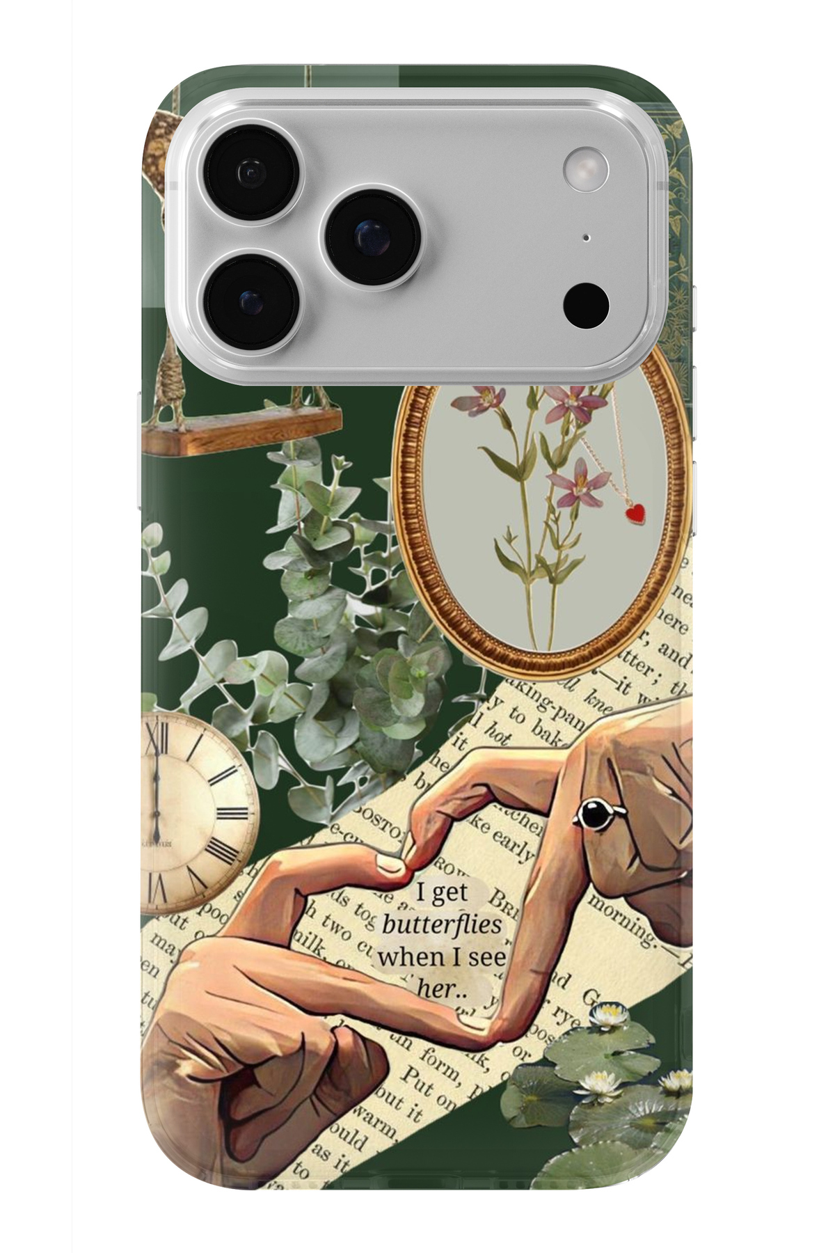 Multitronic حافظة شفافة مطبوعة بتصميم كولاج أخضر متوافقة مع هاتف iPhone 17 Pro