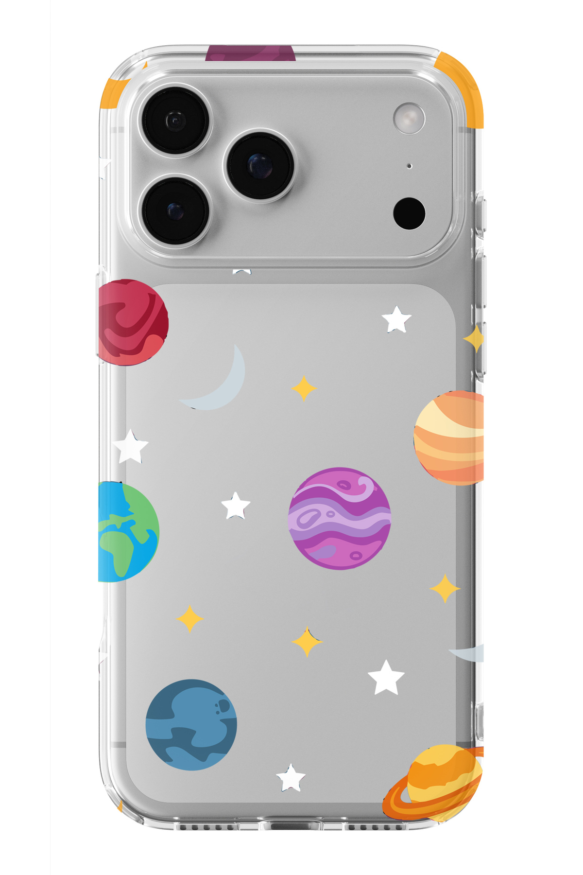 ميزات حافظة شفافة مطبوعة بتصميم الكواكب متوافقة مع هاتف iPhone 17 Pro من Multitronic