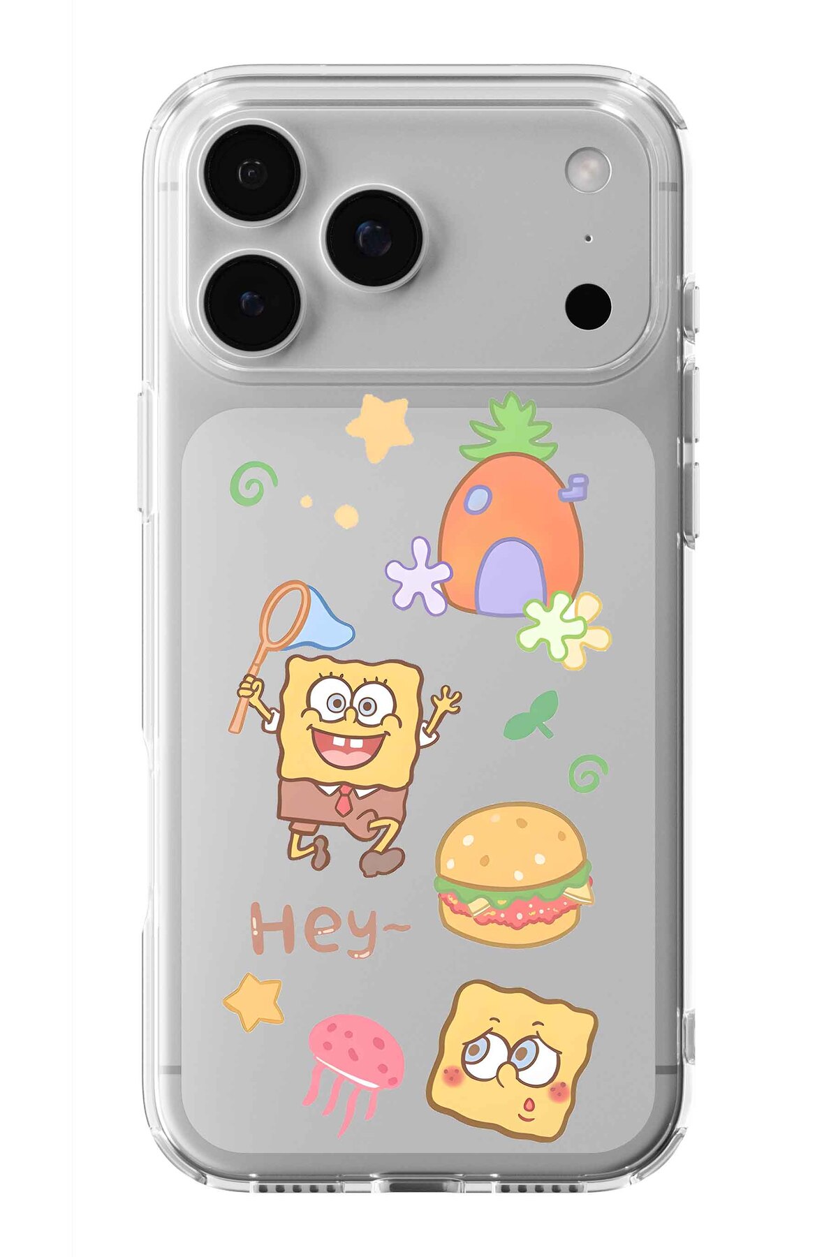 ميزات حافظة شفافة مطبوعة بتصميم سبونج بوب كولاج متوافقة مع آيفون 17 برو من Multitronic