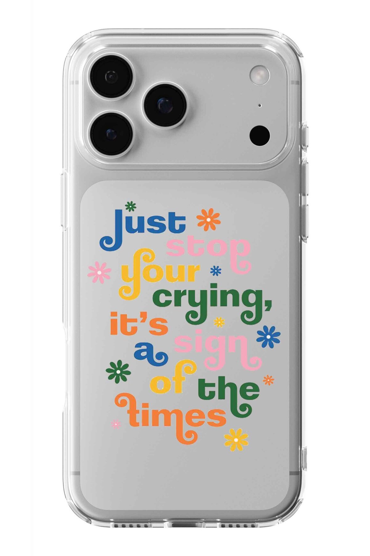ميزات حافظة شفافة مطبوعة بتصميم Stop Crying متوافقة مع هاتف iPhone 17 Pro من Multitronic