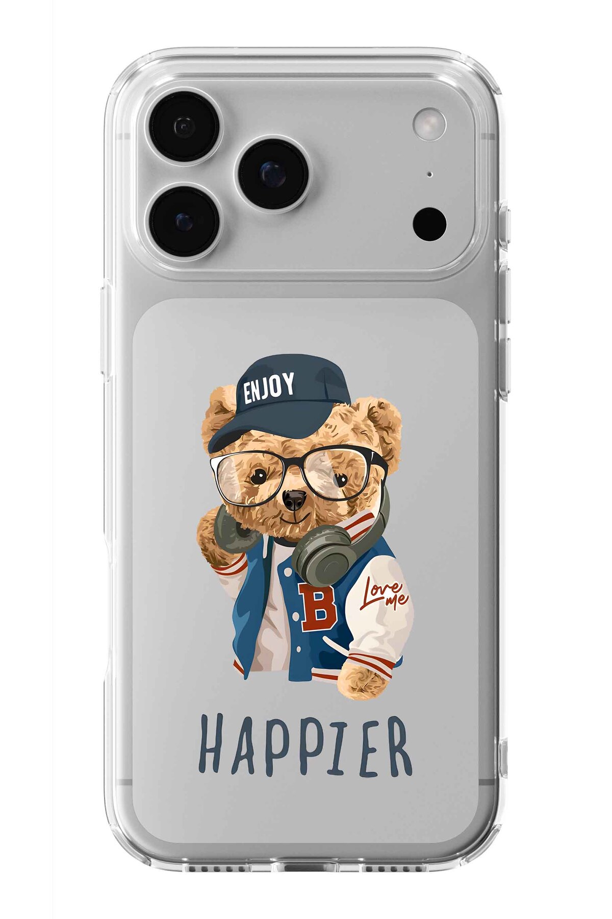 Multitronic حافظة شفافة مطبوعة بتصميم دب تيدي متوافقة مع آيفون 17 برو