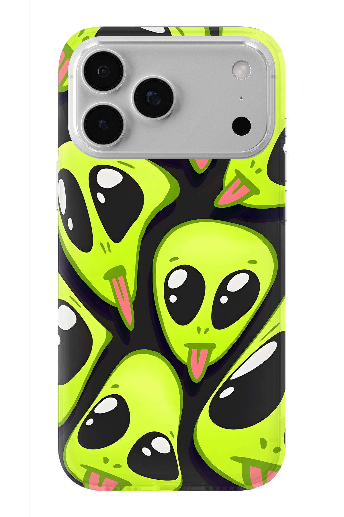 ميزات حافظة شفافة مطبوعة بتصميم Alien متوافقة مع iPhone 17 Pro Max من Multitronic