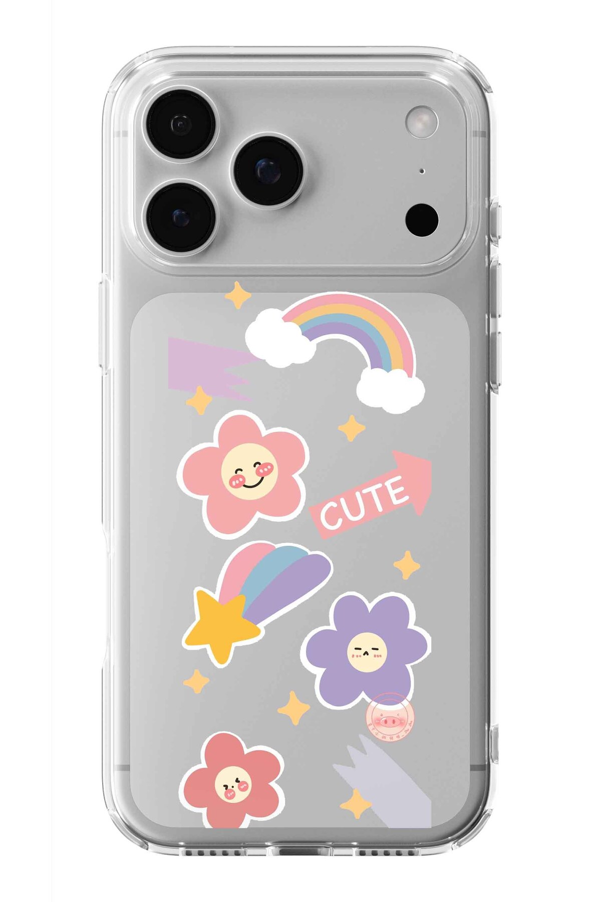 ميزات حافظة شفافة مطبوعة بتصميم قوس قزح لطيف متوافقة مع هاتف iPhone 17 Pro Max من Multitronic