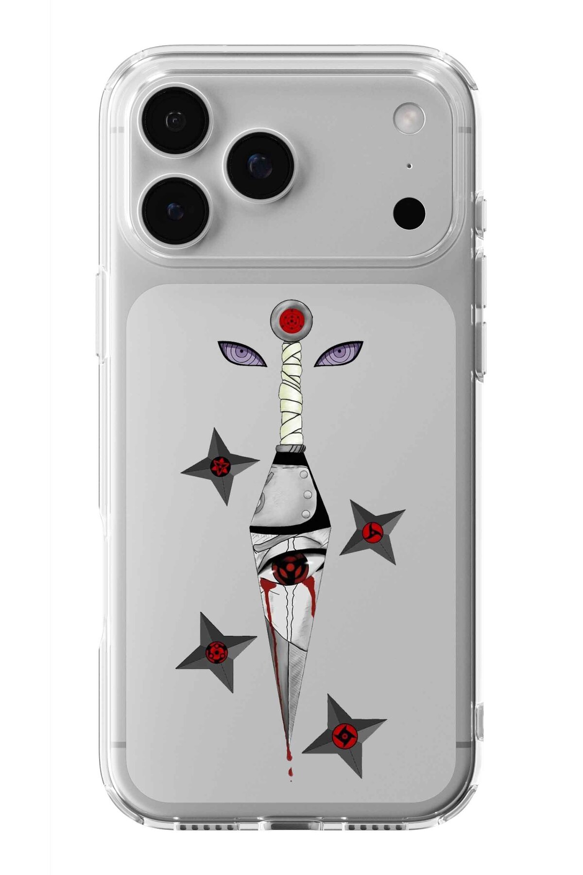 ميزات حافظة شفافة مطبوعة بتصميم ساسوكي شارينجان متوافقة مع آيفون 17 برو ماكس من Multitronic