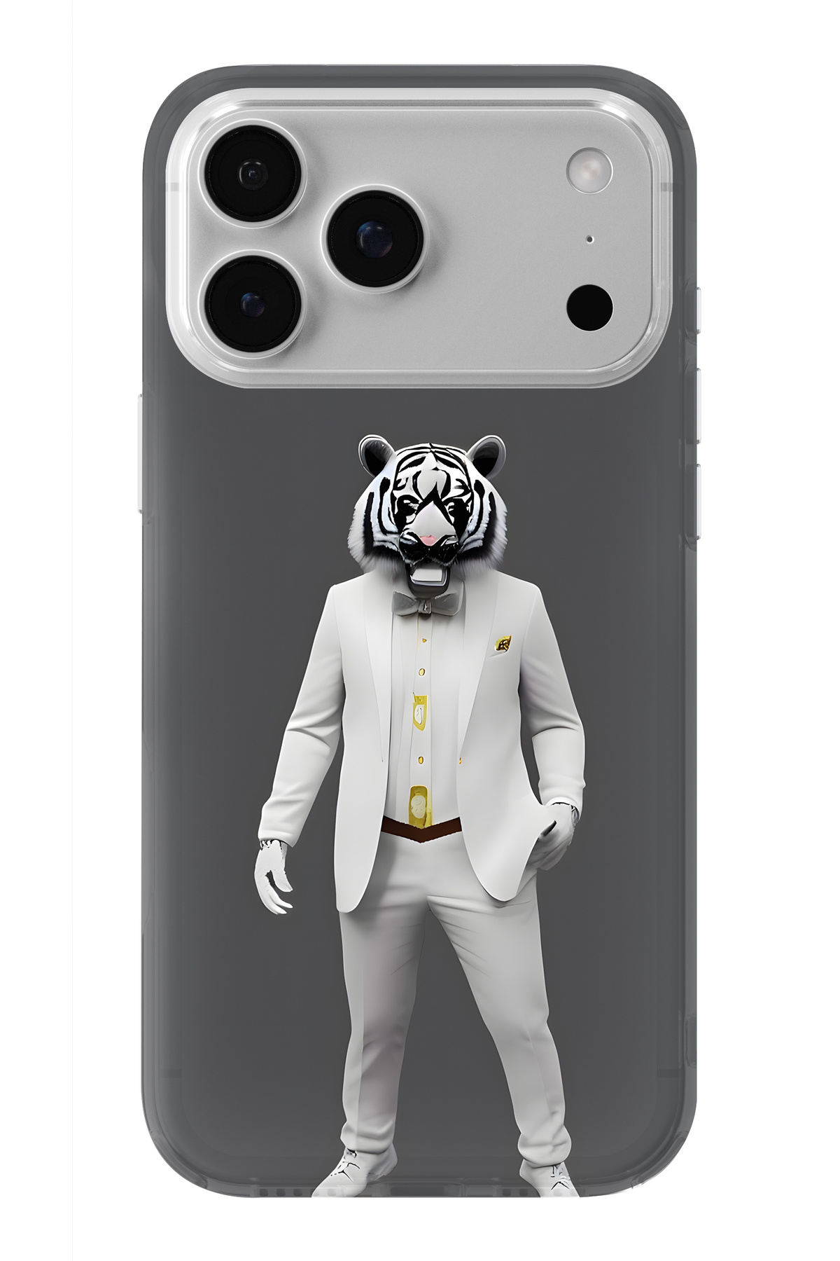 ميزات حافظة شفافة مطبوعة بتصميم النمر الأبيض متوافقة مع هاتف iPhone 17 Pro Max من Multitronic