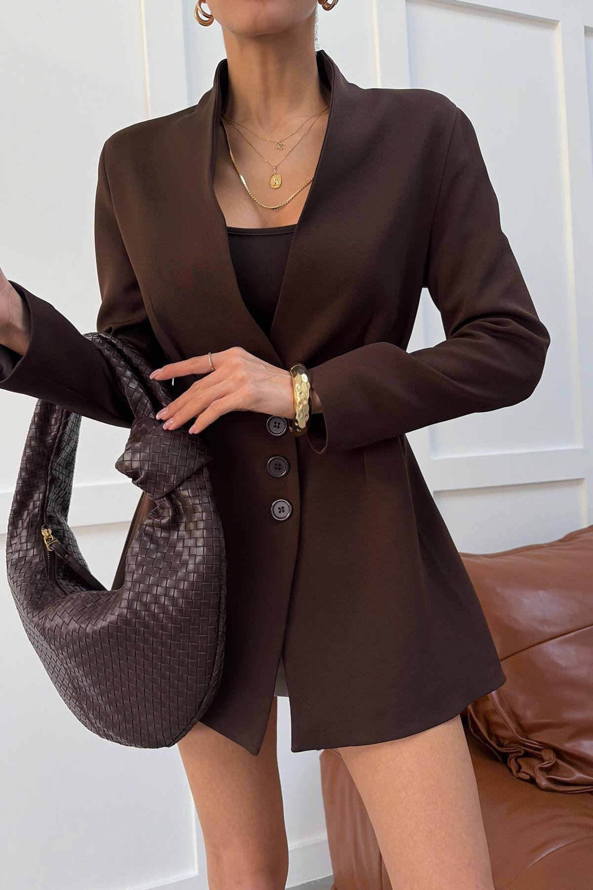 ميزات سترة بدون ياقة بمشبكين باللون البني من mylove