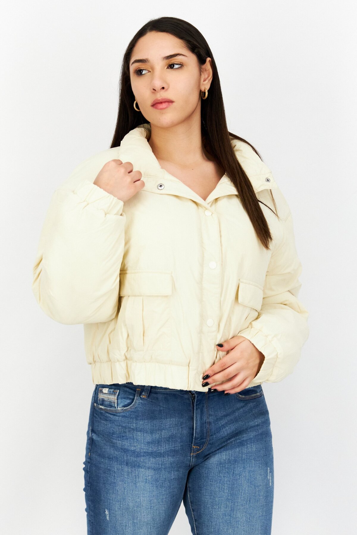 ميزات جاكيت بومبر نسائي سادة، كريمي من NA-KD