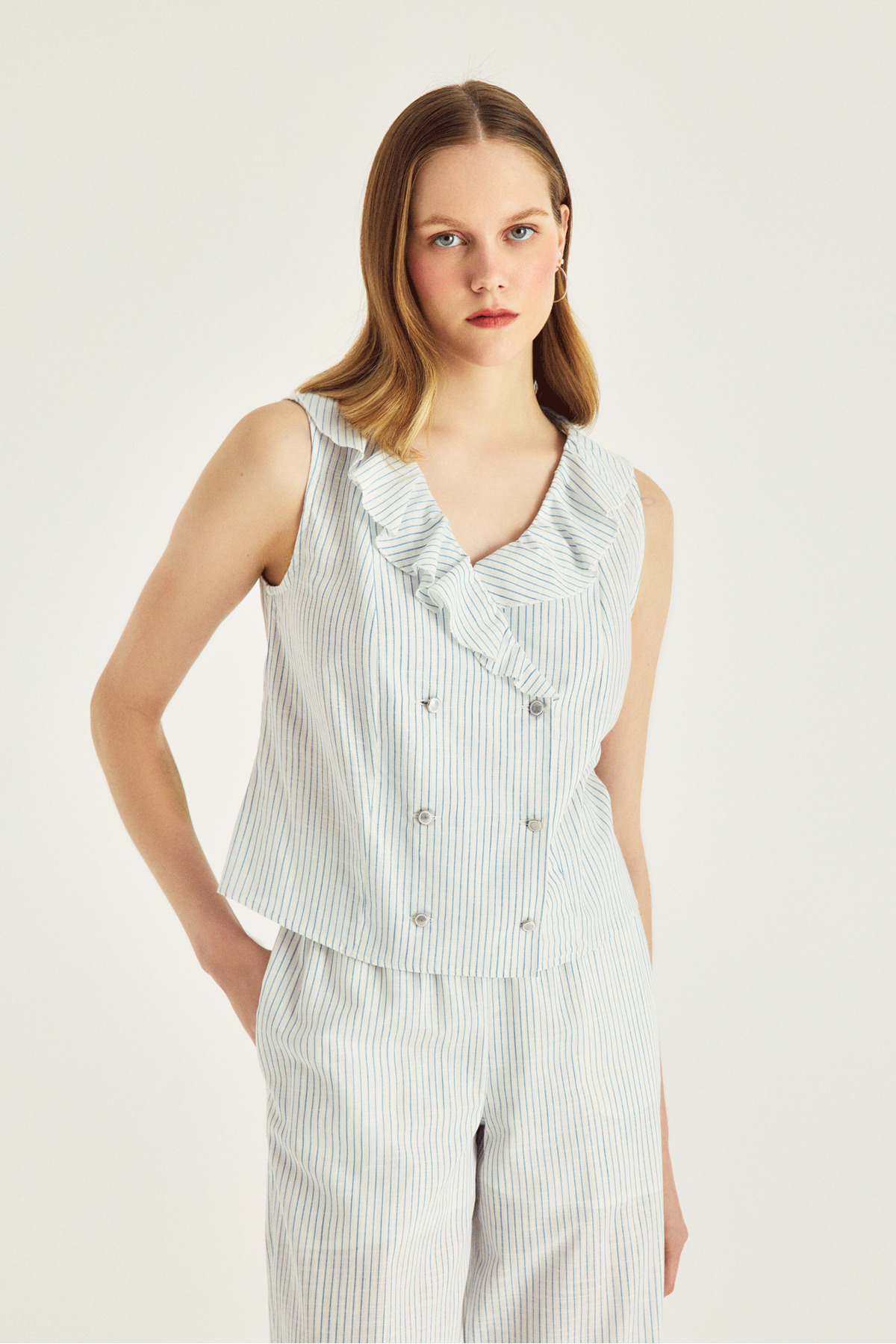 ميزات بلوزة مخططة مزدوجة الصدر من Naramaxx