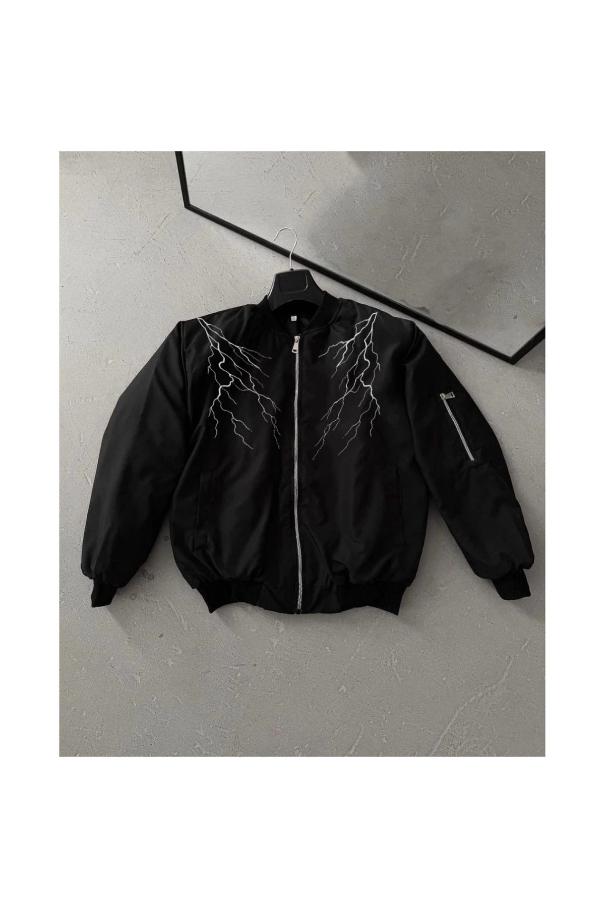 ميزات جاكيت بومبر أسود - بنمط البرق الأبيض - من Narnuga