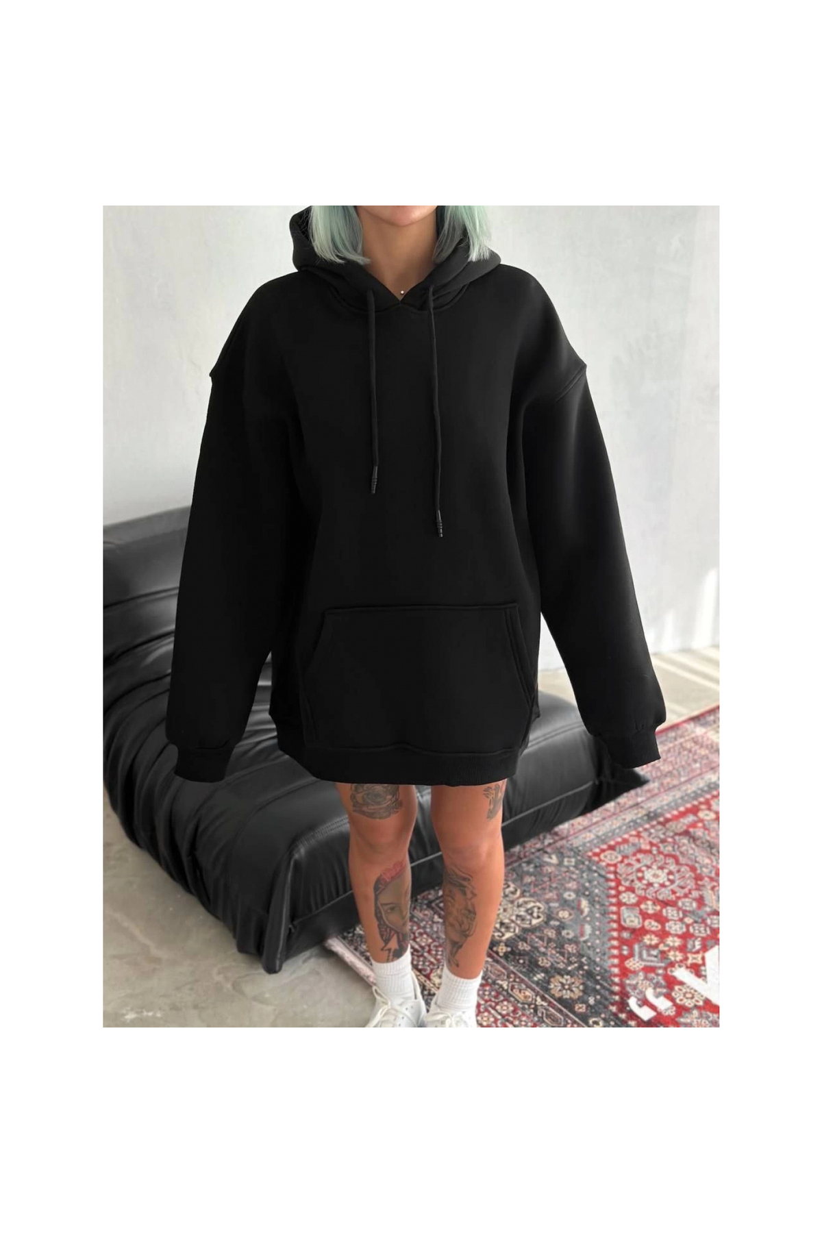Narnuga سويت شيرت أساسي من القطن الممشط بثلاثة خيوط وغطاء للرأس - أسود -