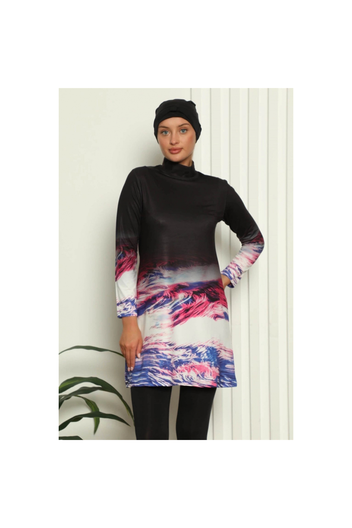 Narnuga MİRAY- ملابس سباحة محتشمة بالكامل بنقشة رقمية باللون الأسود