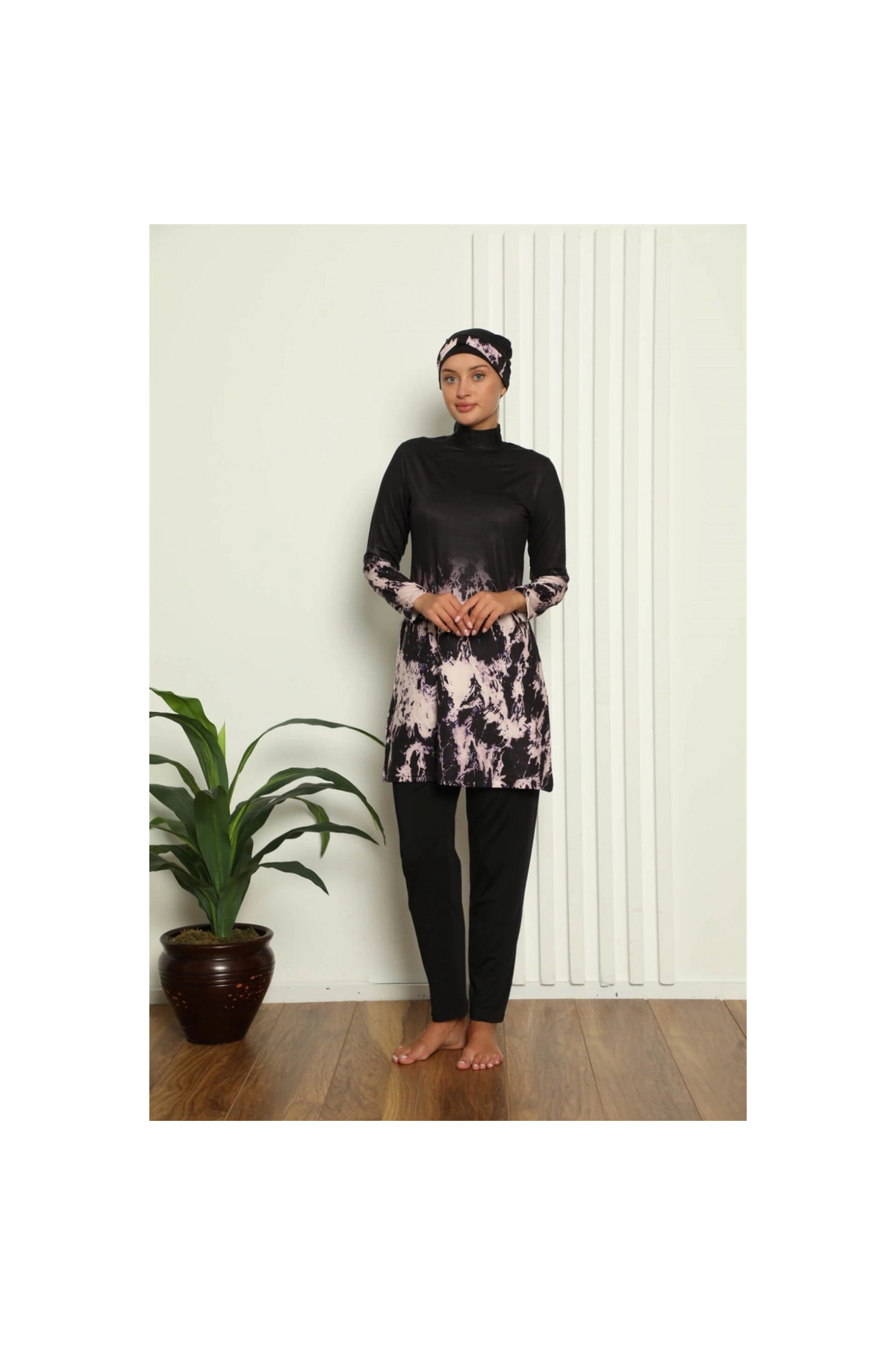 Narnuga MİRAY- ملابس سباحة محتشمة بالكامل بنقشة رقمية باللون الأسود