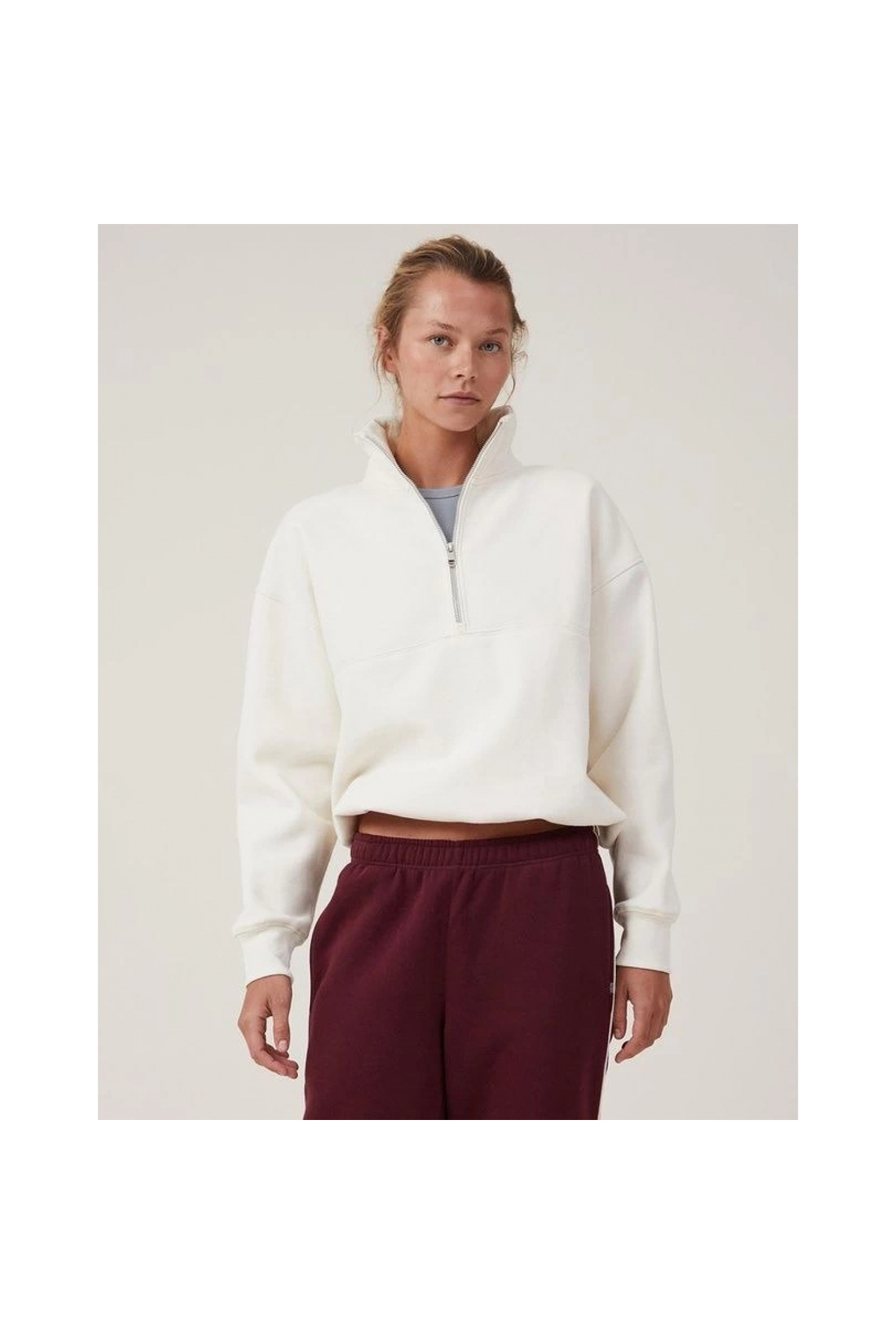 ميزات قصة فضفاضة سترة أساسية بياقة نصفية - أبيض - من Narnuga