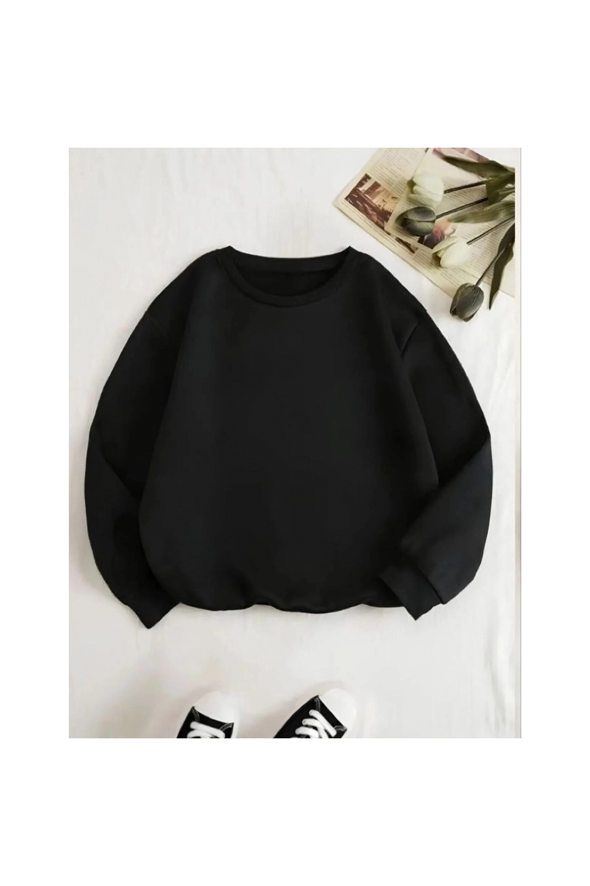 ميزات سويت شيرت بثلاثة خيوط وياقة بيسكيت - أسود - من Narnuga