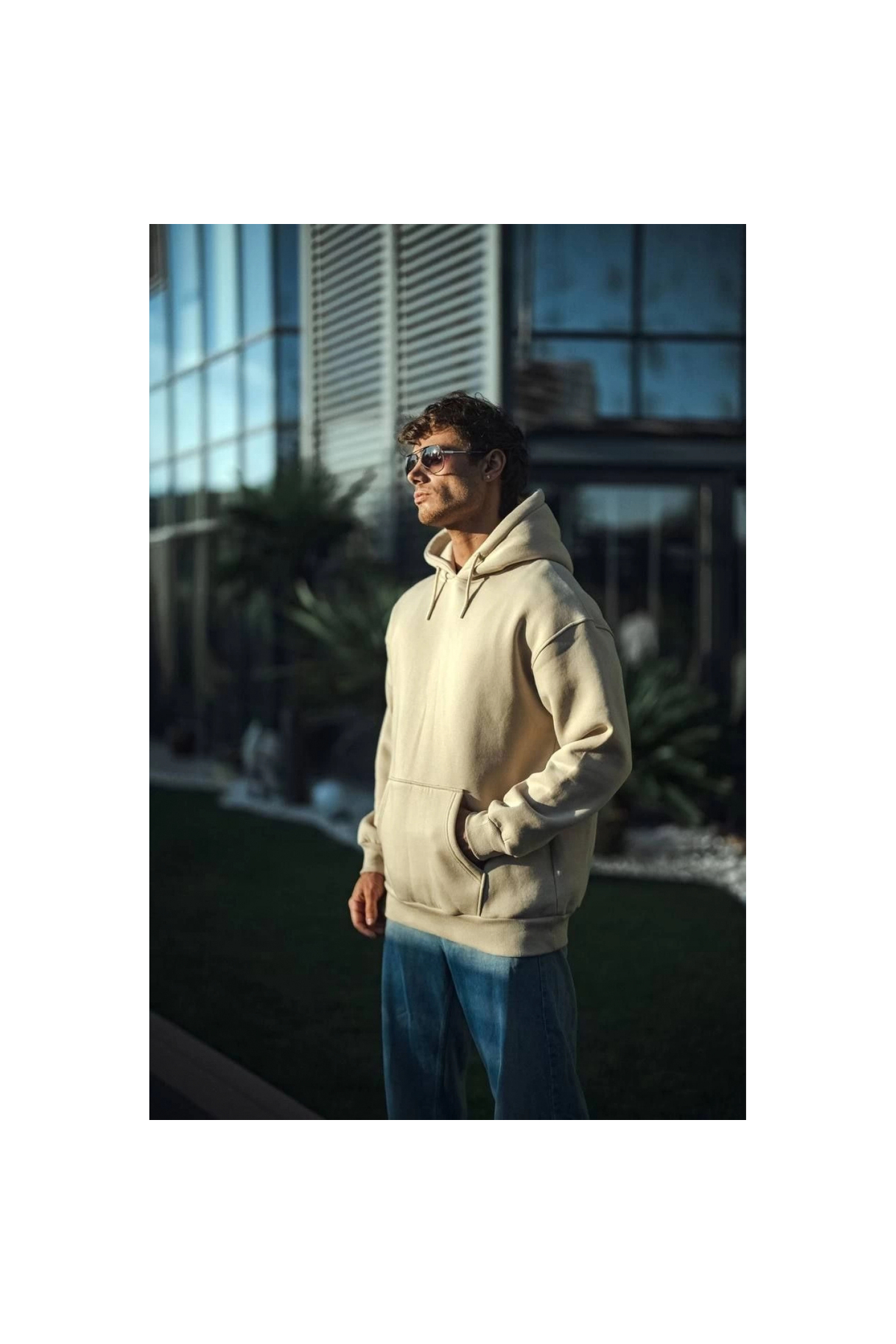 Narnuga سترة رياضية أساسية بقلنسوة من القطن الممشط بثلاث خيوط - بيج -