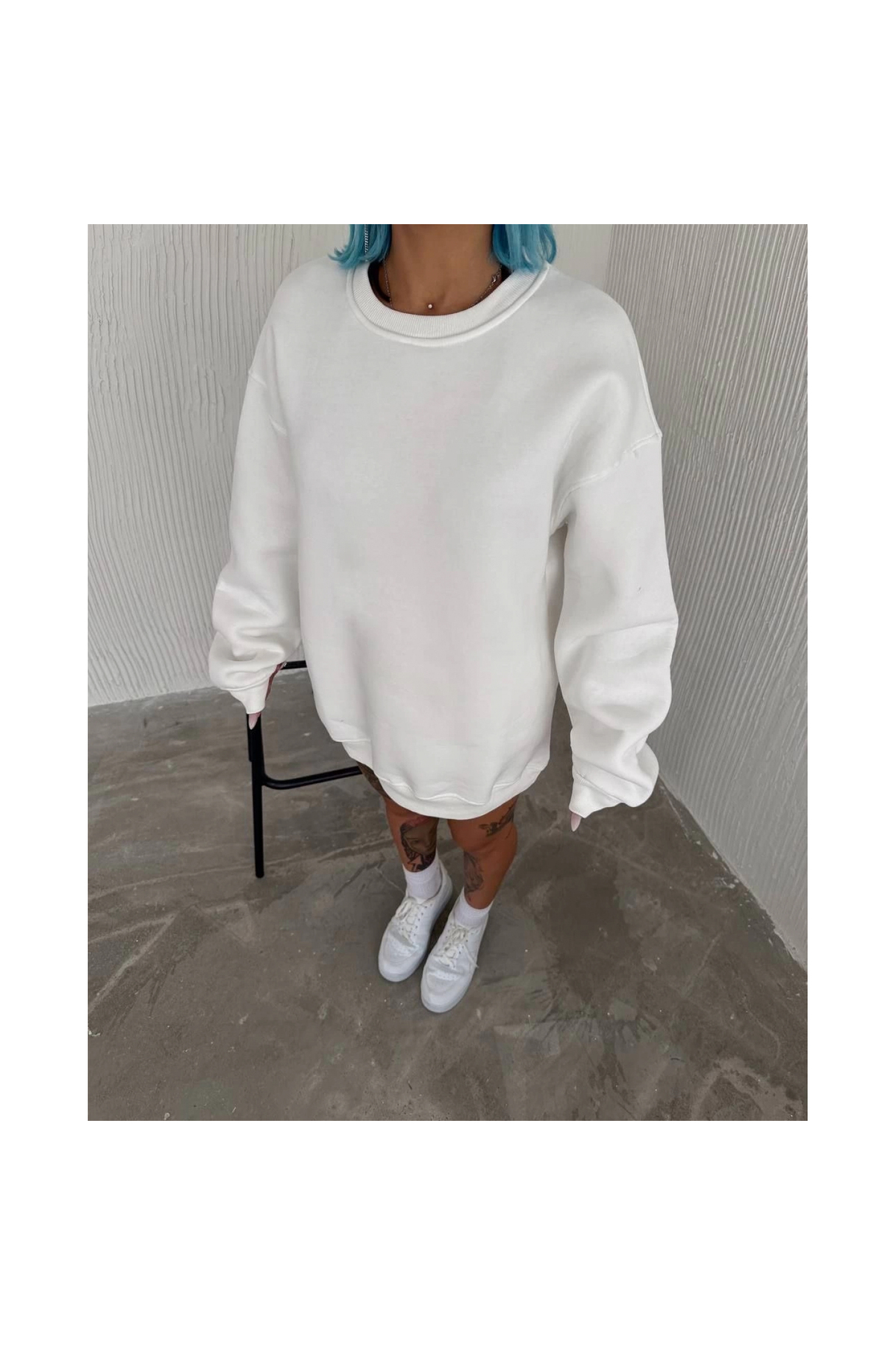 ميزات سترة شتوية بياقة دائرية وثلاث خيوط - أبيض - من Narnuga