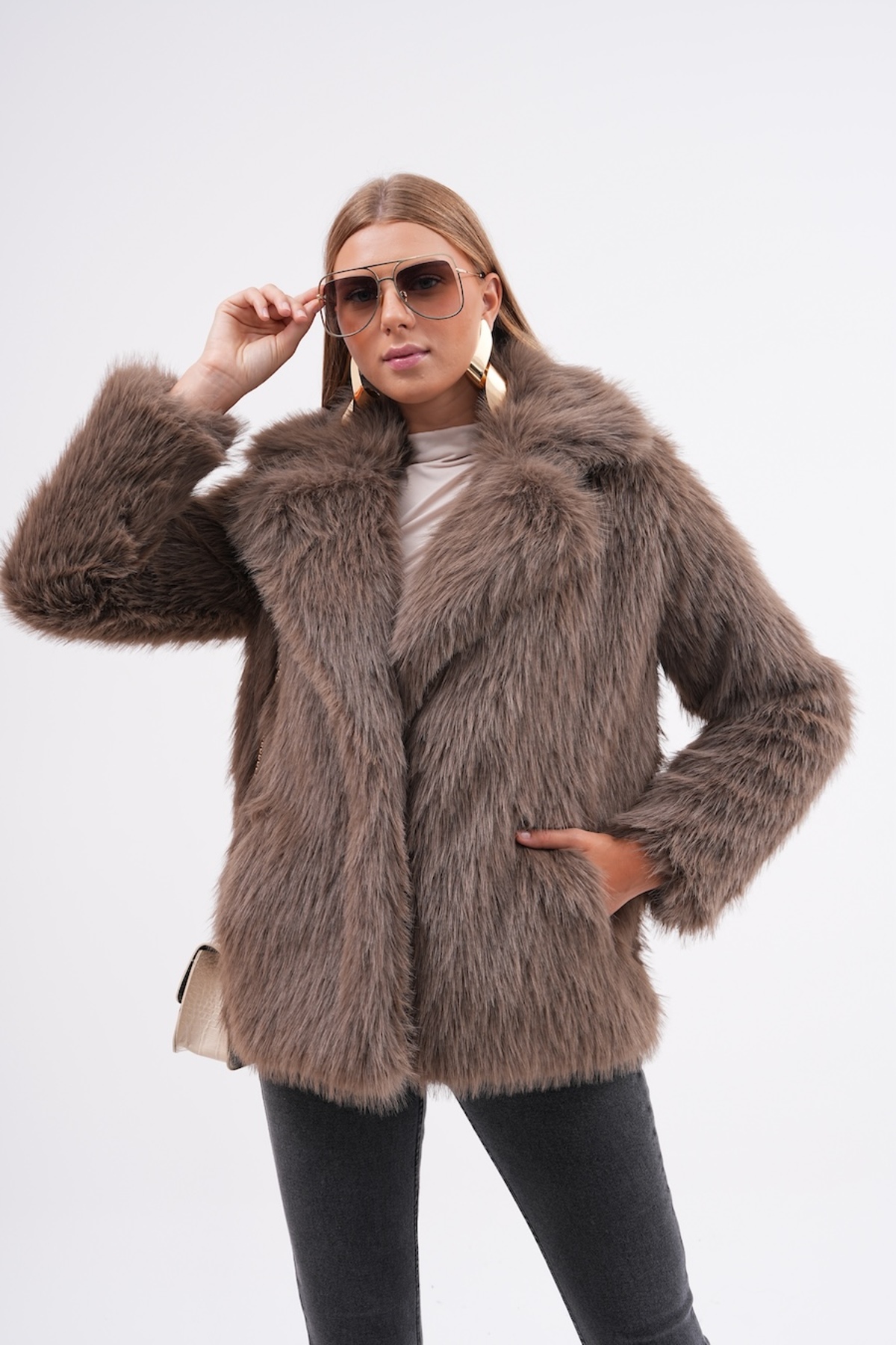 NAVY سترة بياقة فروي