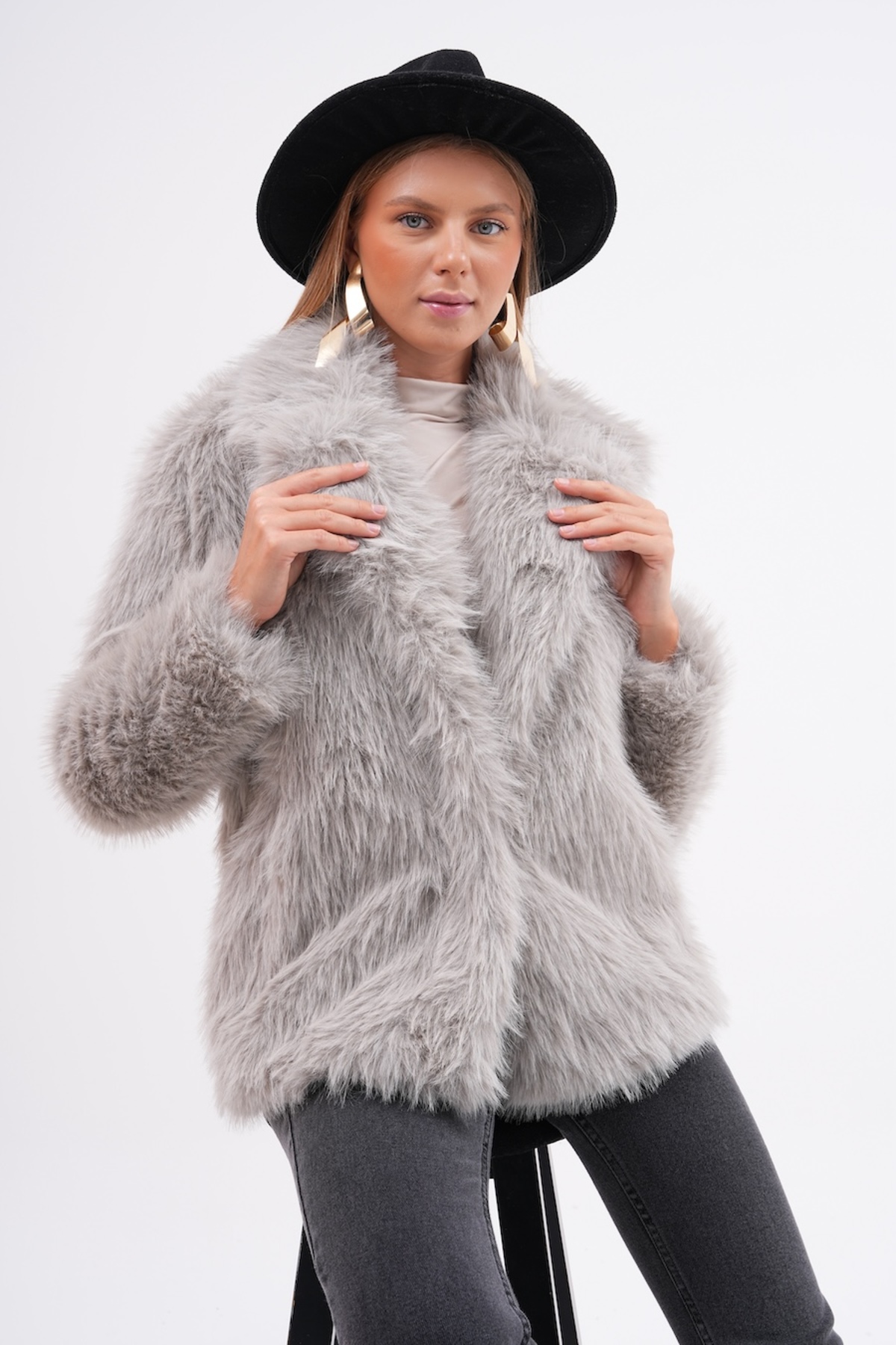 NAVY سترة بياقة فروي