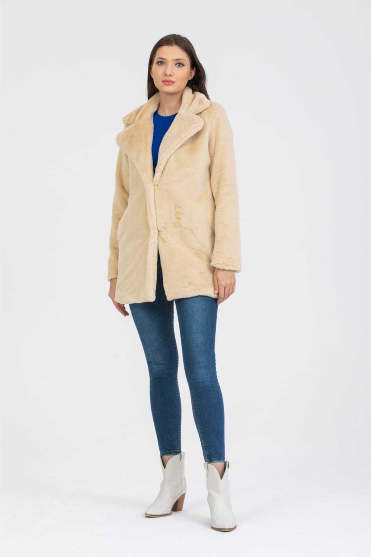 NAVY سترة بياقة فرو الأرنب