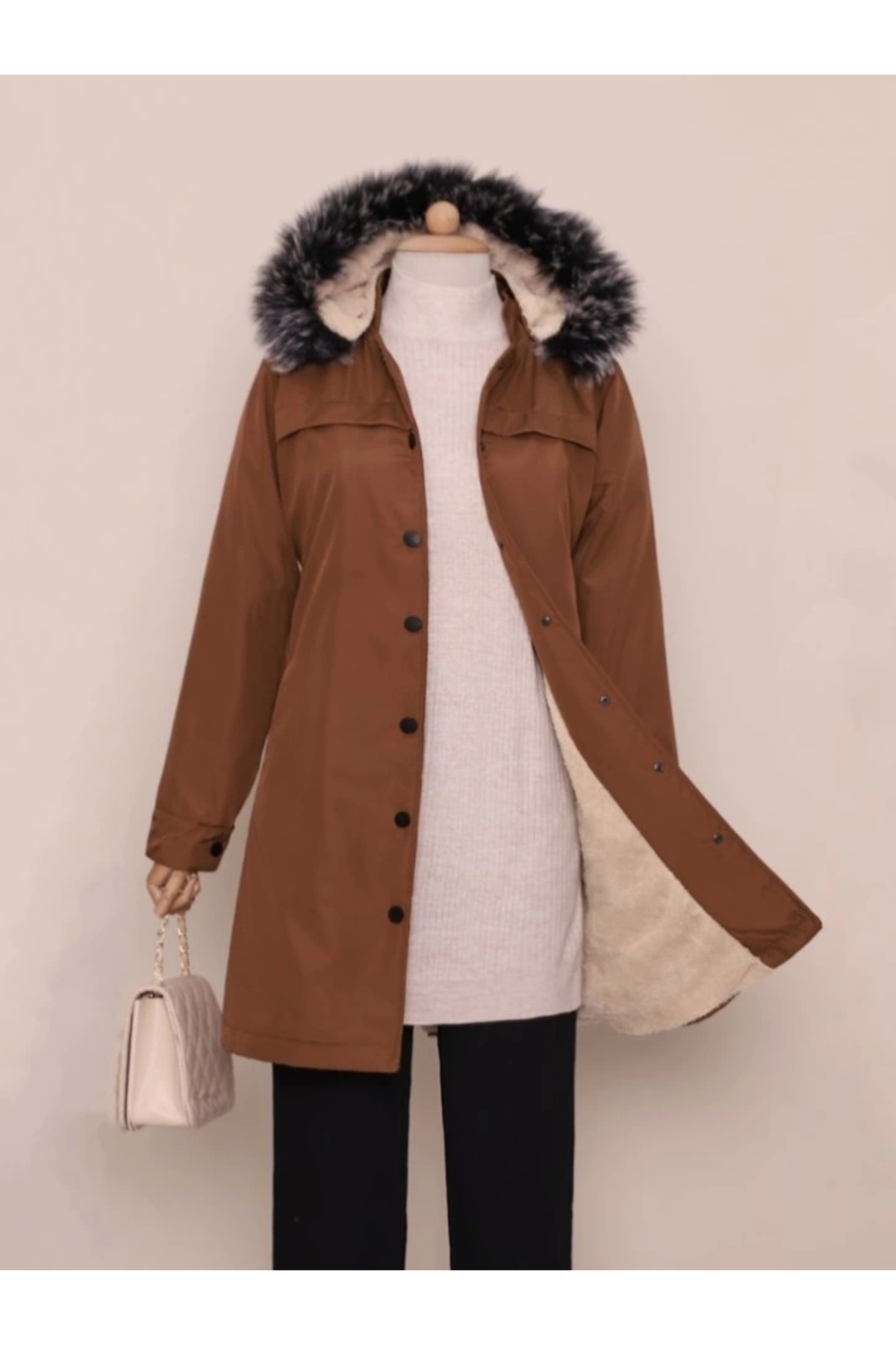 ميزات معطف قصير بغطاء للرأس مع جيوب - تابا من nedo7