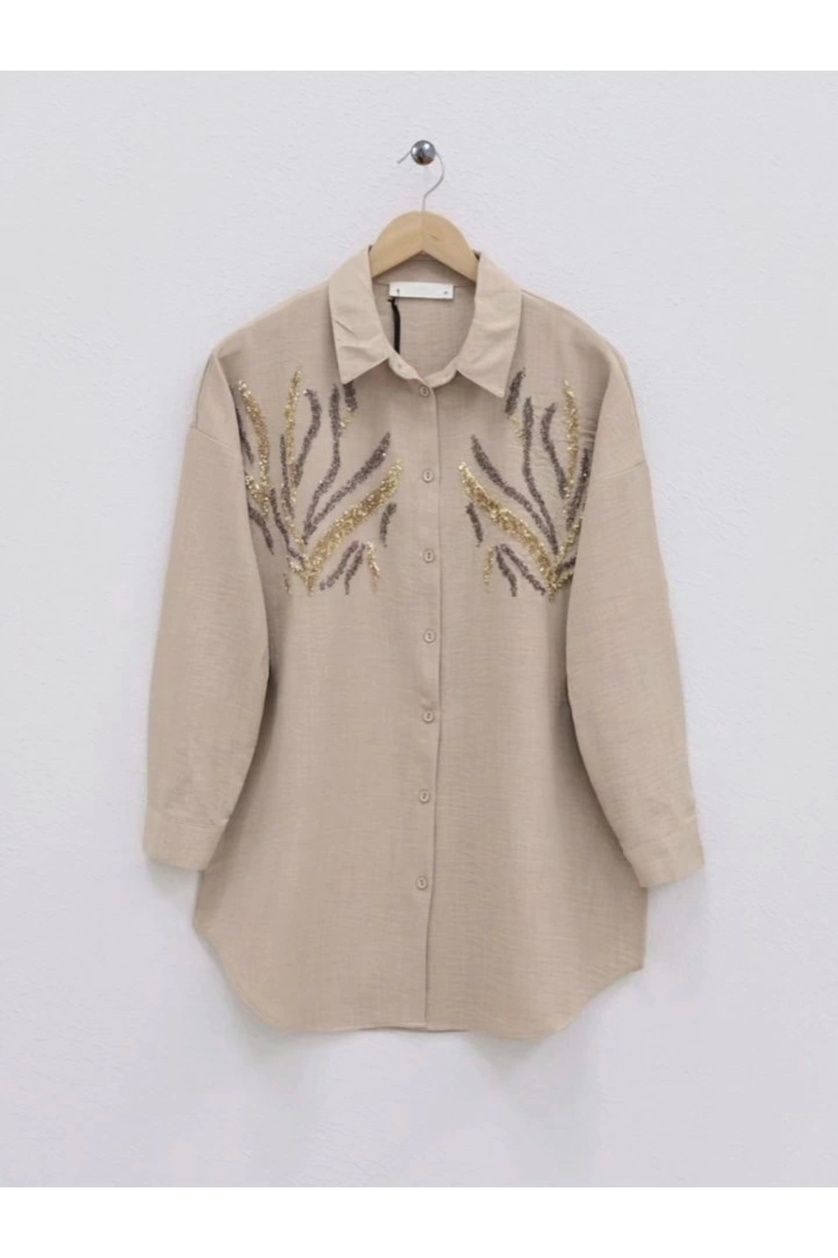 ميزات قميص طويل مزين بالترتر على المقدمة - مينك من nedo7