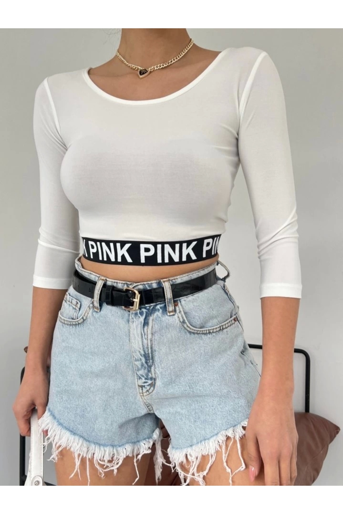 nedo7 قطعة قصيرة مطاطية بأكمام فقيرة مكتوبة باللون الوردي - إكرو