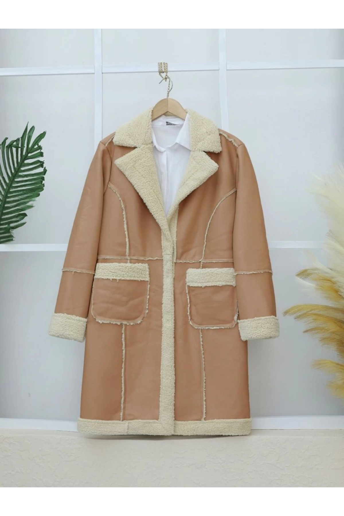 ميزات معطف جلدي مع جيب مبطن بالقطيفة - مينك من nedo7