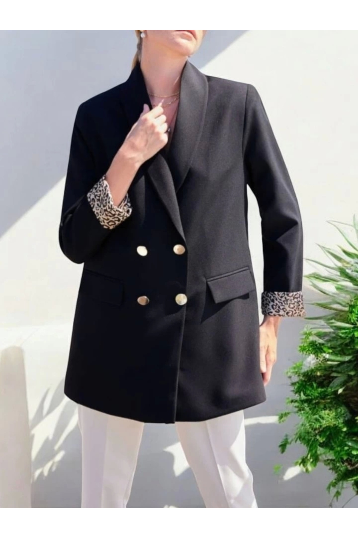 ميزات سترة بليزر بأزرار مزدوجة مع تفاصيل الجيب - أسود من nedo7
