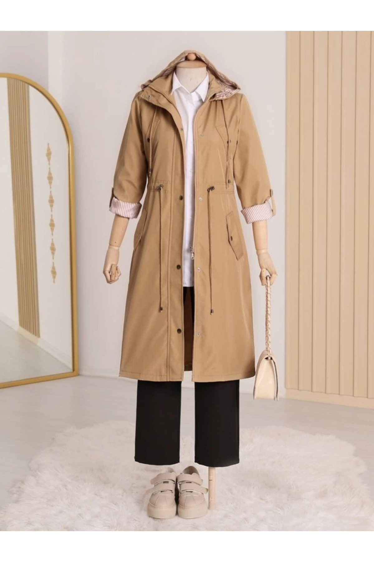 ميزات معطف مخطط بنعل داخلي - مينك من nedo7
