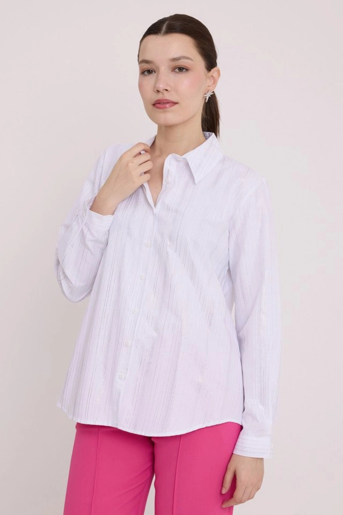 ميزات قميص منقوش برقائق الفضة البيضاء 20253 من nedo7