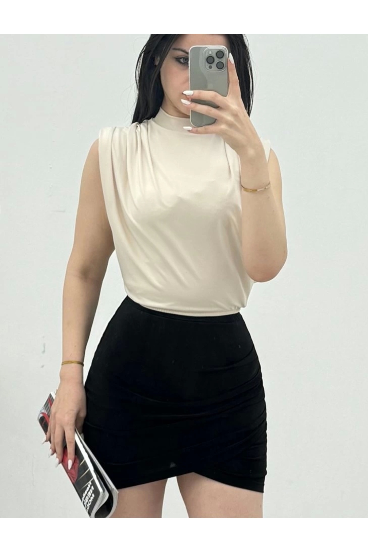 ميزات بلوزة ساندي مبطنة بدون أكمام - بيج من nedo7