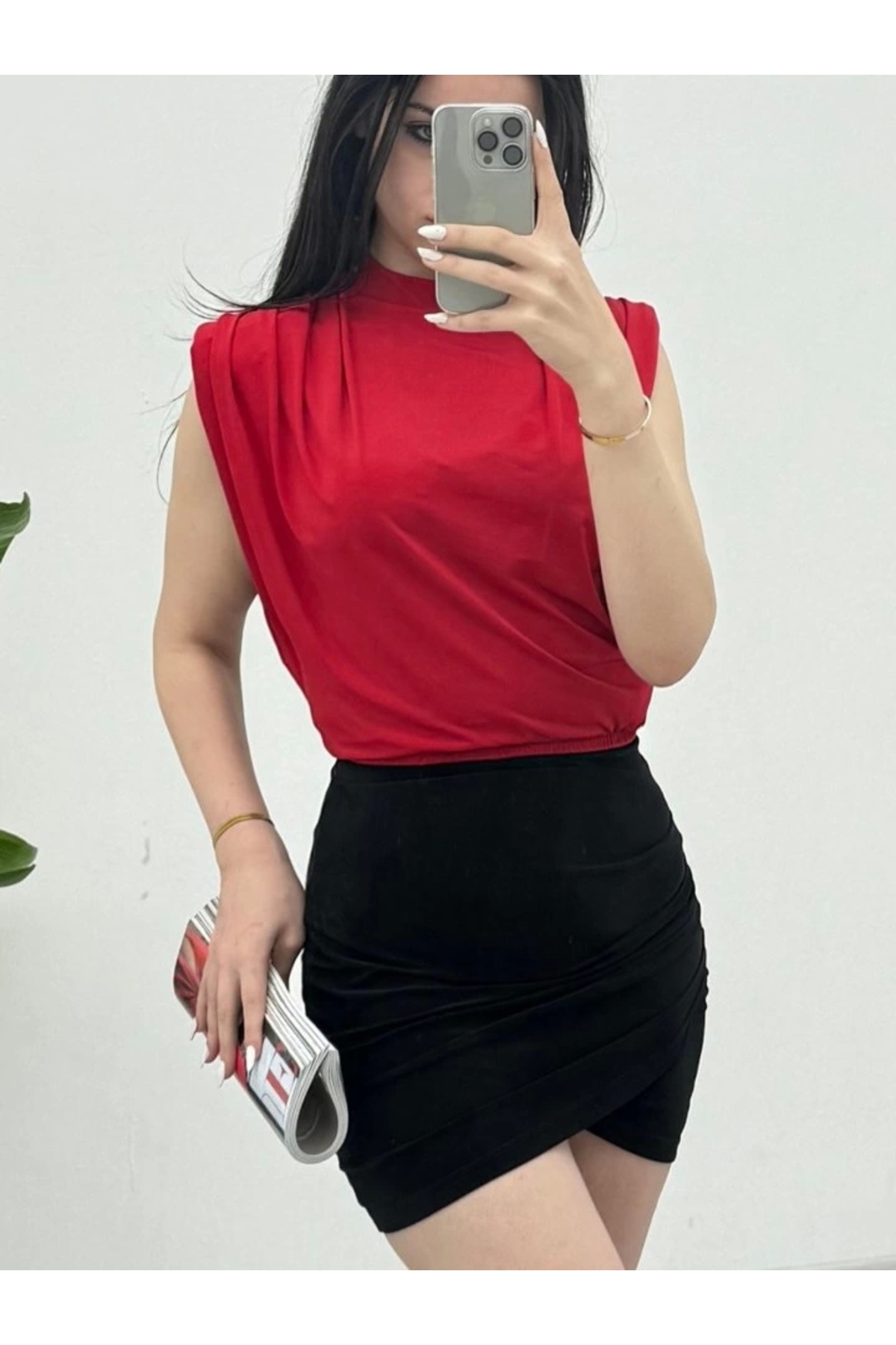 ميزات بلوزة ساندي بدون أكمام حشوة كتف قطعة - أحمر من nedo7
