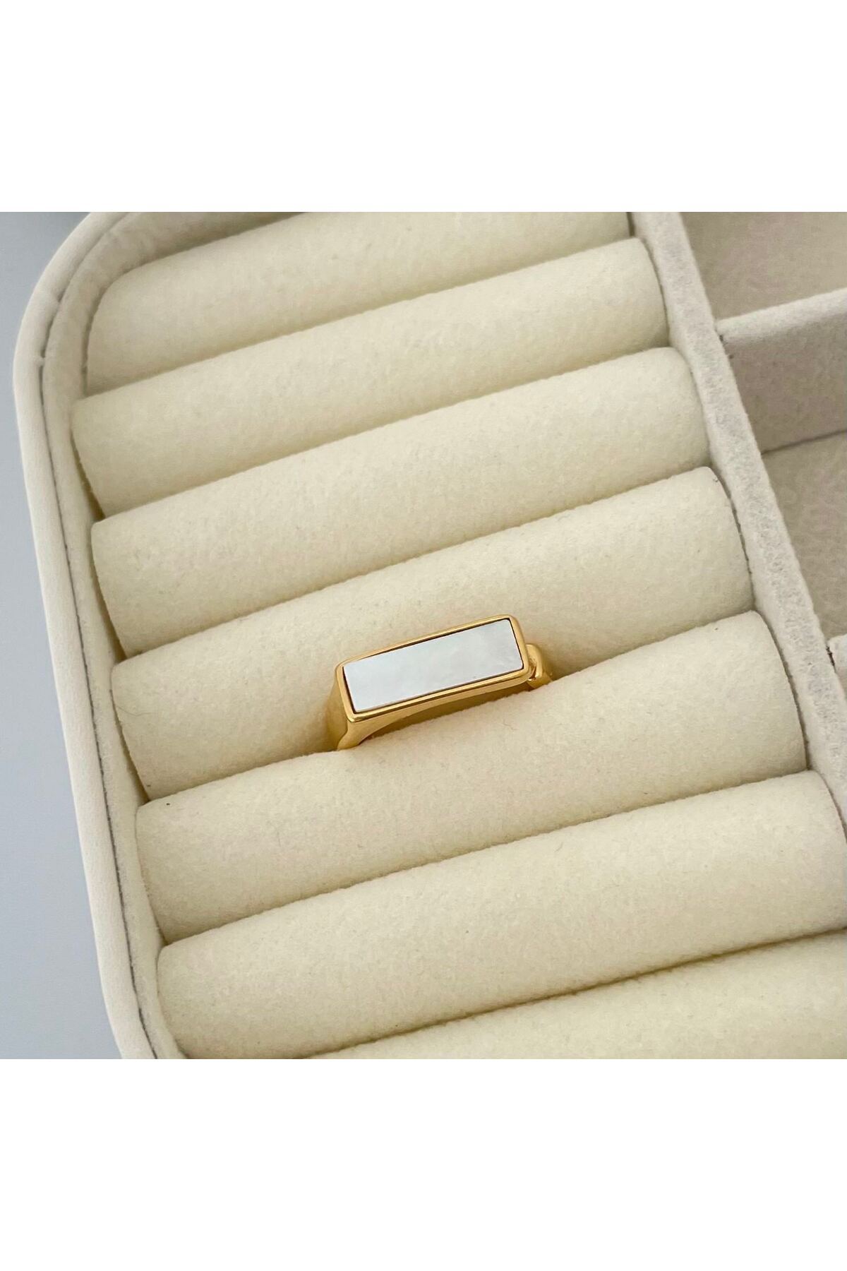 ميزات خاتم مستطيل من الفولاذ الذهبي مع حجر اللؤلؤ من nerora