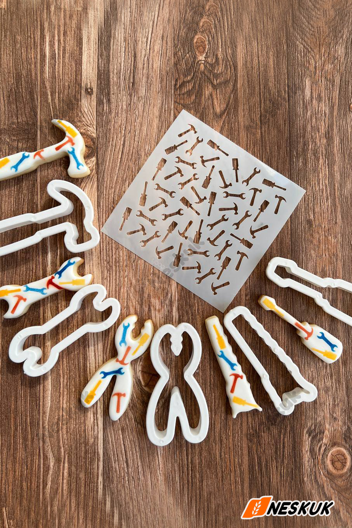 Neskuk قالب بسكويت على شكل أداة + قالب منقوش على شكل أداة