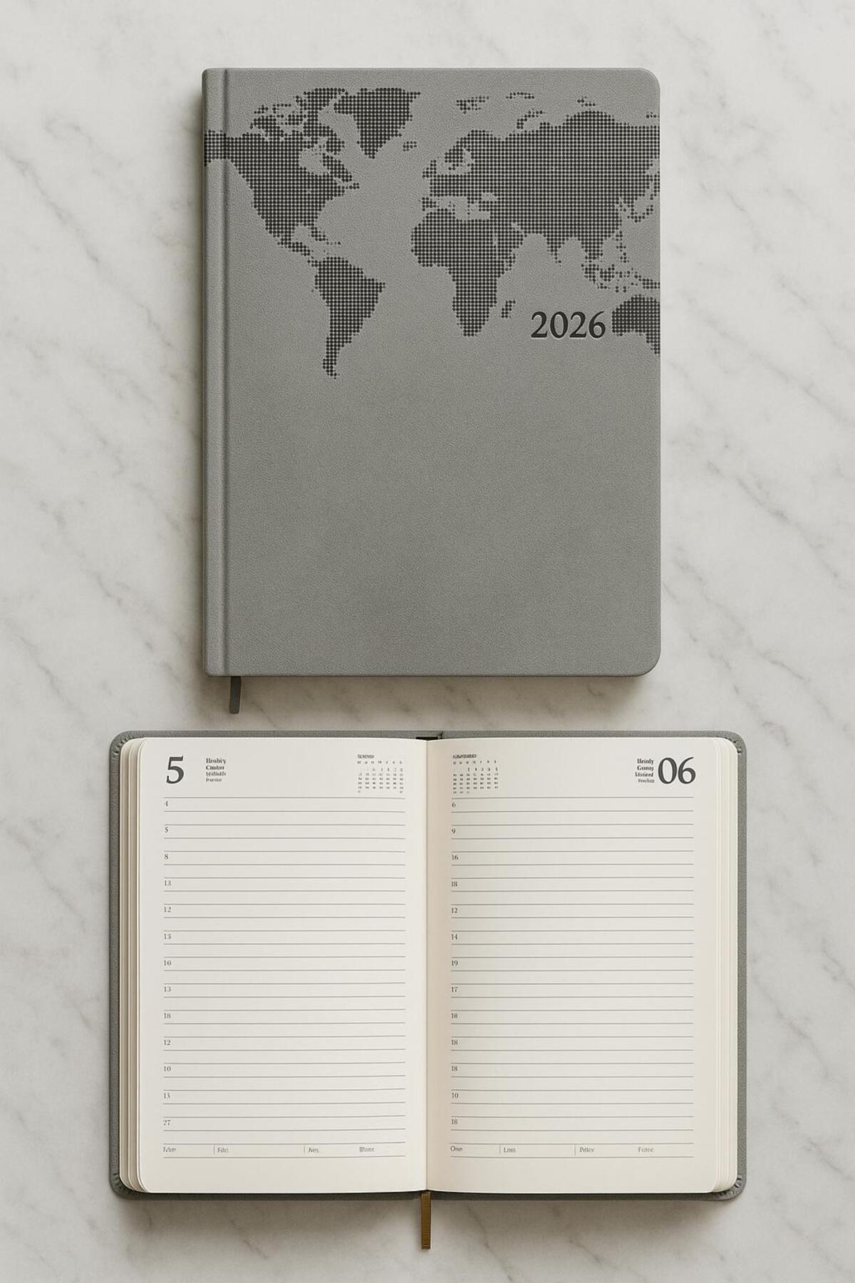 nesnelgift مفكرة منقوشة بخريطة العالم التاريخية من الجلد الحراري لعام 2026