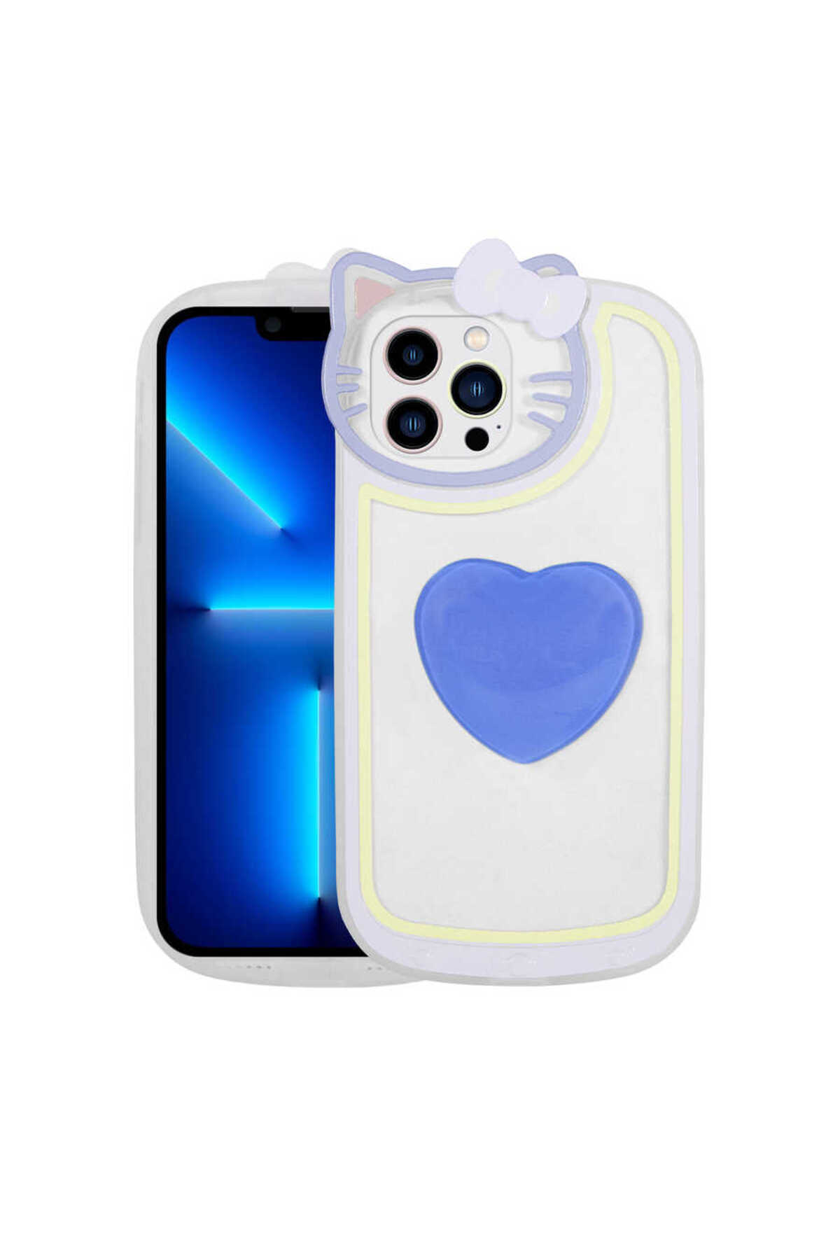 ميزات حافظة SAFA المتناغمة متوافقة مع هاتف iPhone 13 Pro Max مع شكل قطة وحامل شفاف - أزرق من Netzy