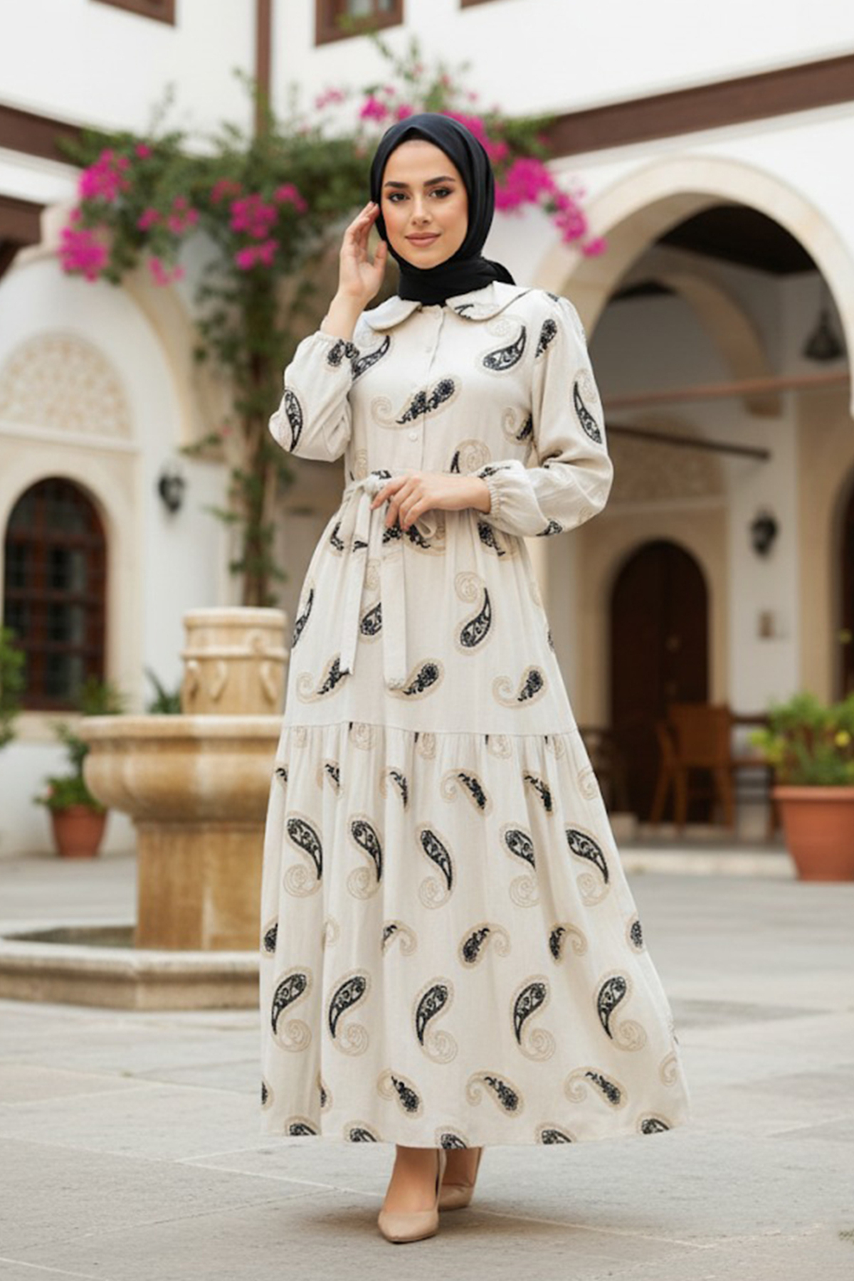 ميزات فستان حجاب أسود منقوش 10302S من Neva Style