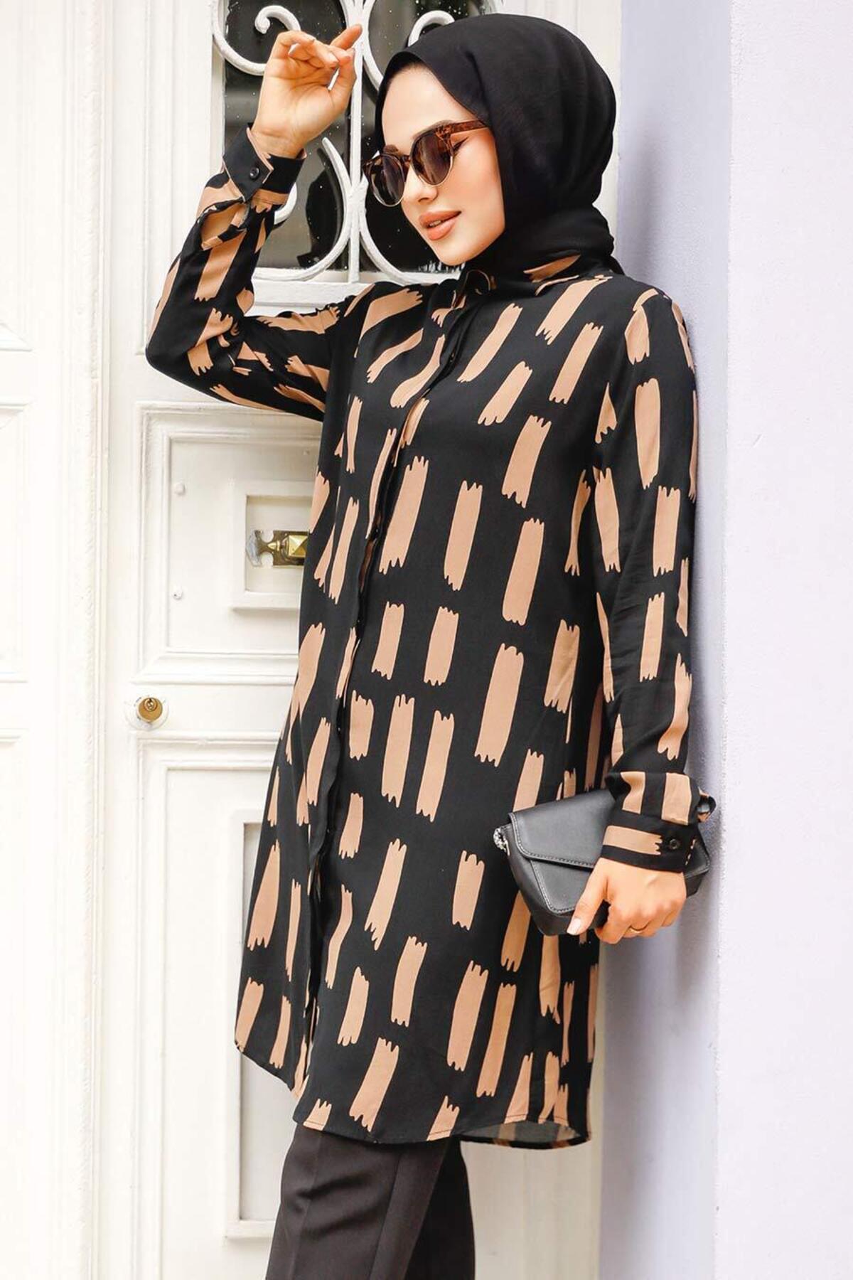 ميزات تونيك حجاب بني منقوش 11683KH من Neva Style