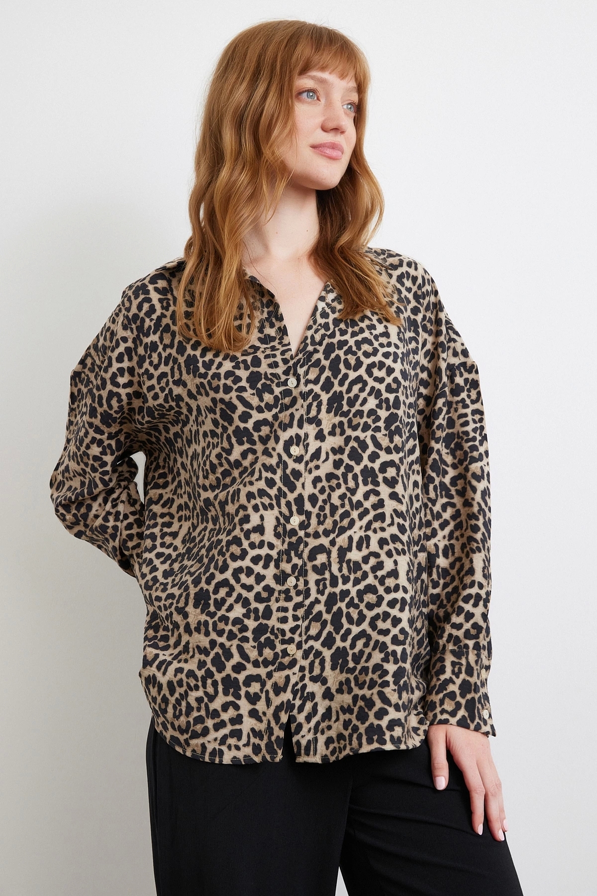 ميزات قميص جافانيز بنمط الفهد باللون الأسود من Never more