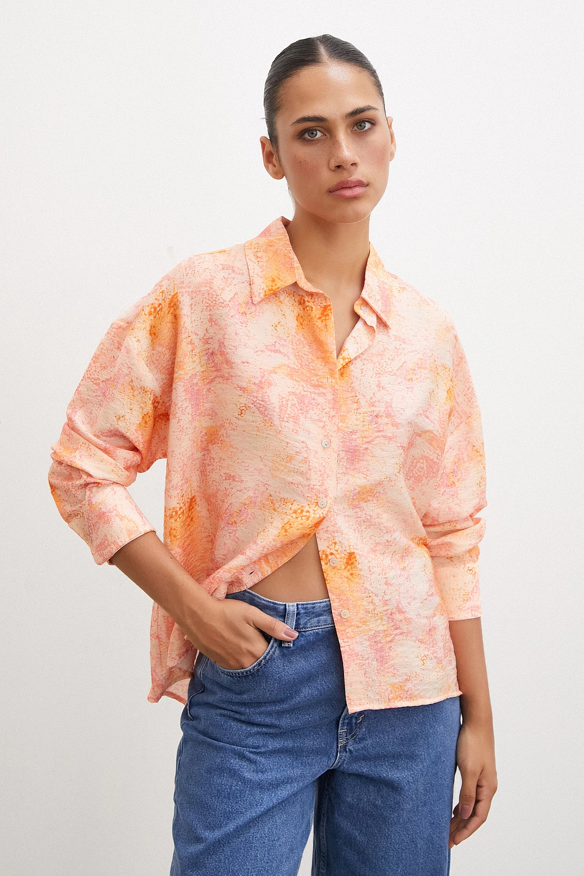 ميزات قميص مودال برتقالي - نمط قطرة من Never more