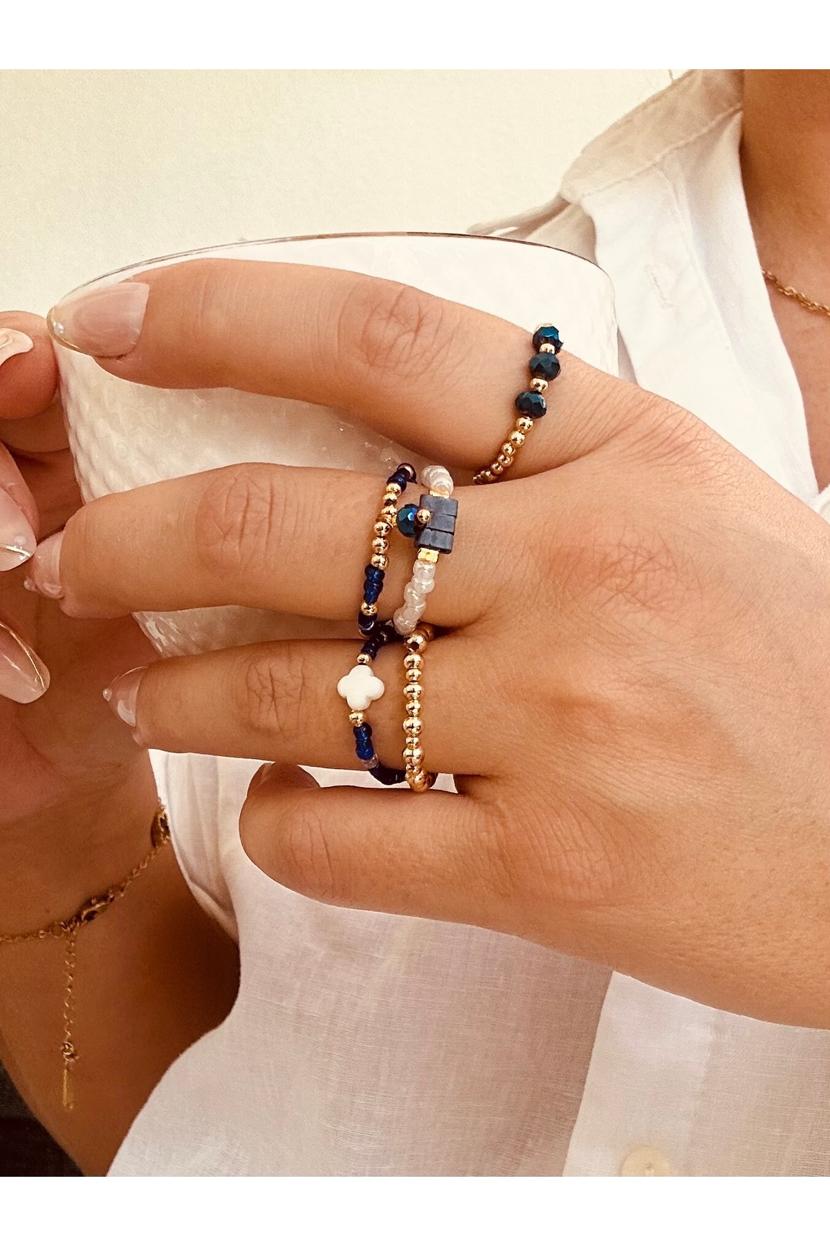 NevoAccessory مجموعة مينيمال مكونة من 5 خواتم من الخرز