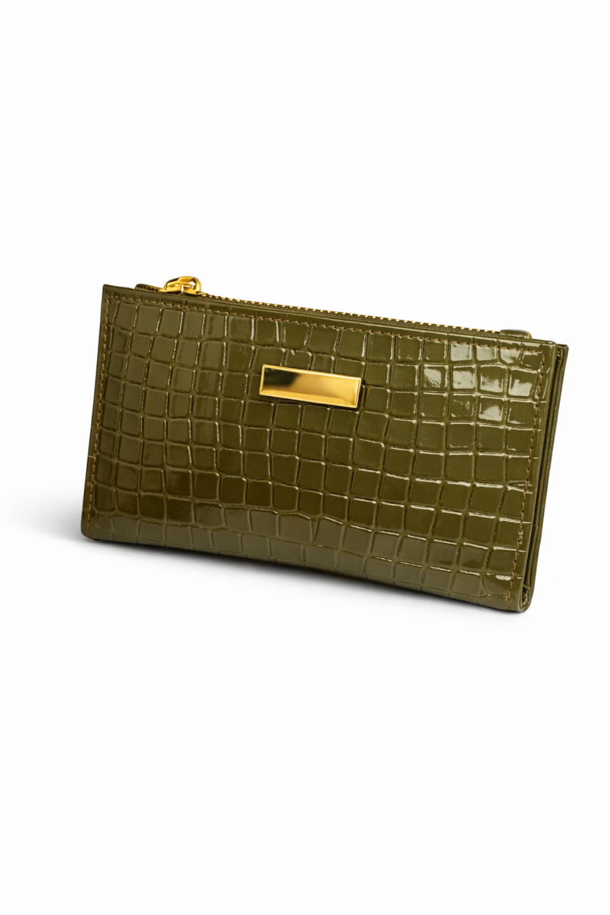 Newish Polo محفظة أساسية بنمط جلد التمساح مع سحاب ذهبي
