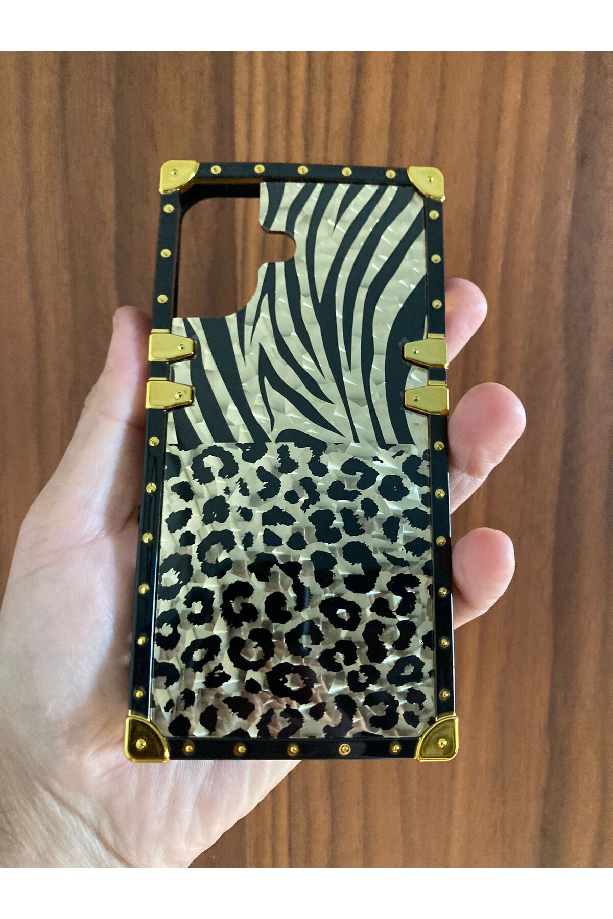 Newon غطاء حماية لهاتف آيفون 16 بلس بحلقة على شكل نمر وغطاء بإطار ذهبي